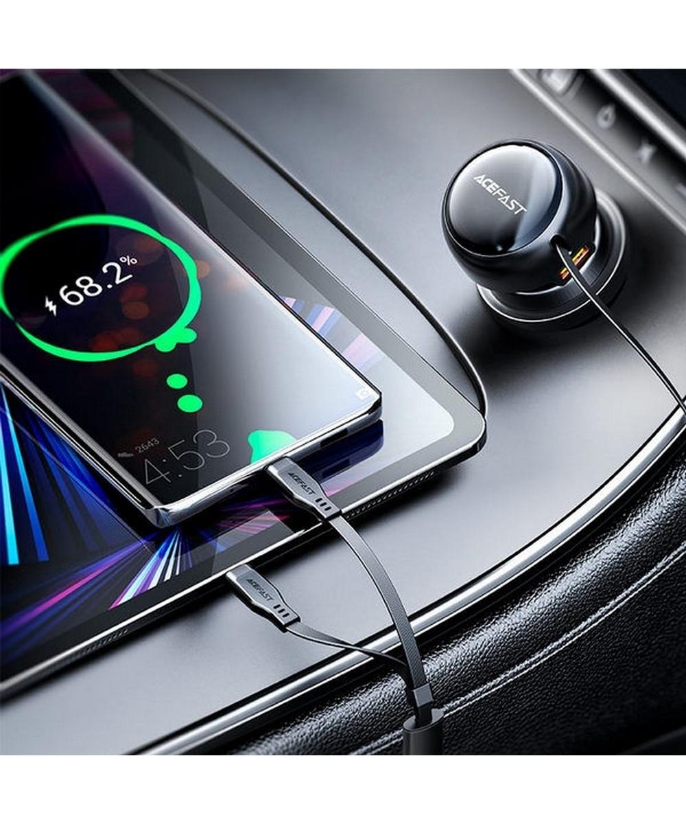 Автомобильное зарядное устройство AceFast B13 (AF-B13-BK) Black — мощный и стильный аксессуар, созданный для комфортных и безопасных путешествий. Оснащённое тремя портами (1×USB-A и 2×USB-C) с общей мощностью до 53 Вт, устройство позволяет одновременно быстро заряжать несколько гаджетов — от смартфонов до планшетов.
