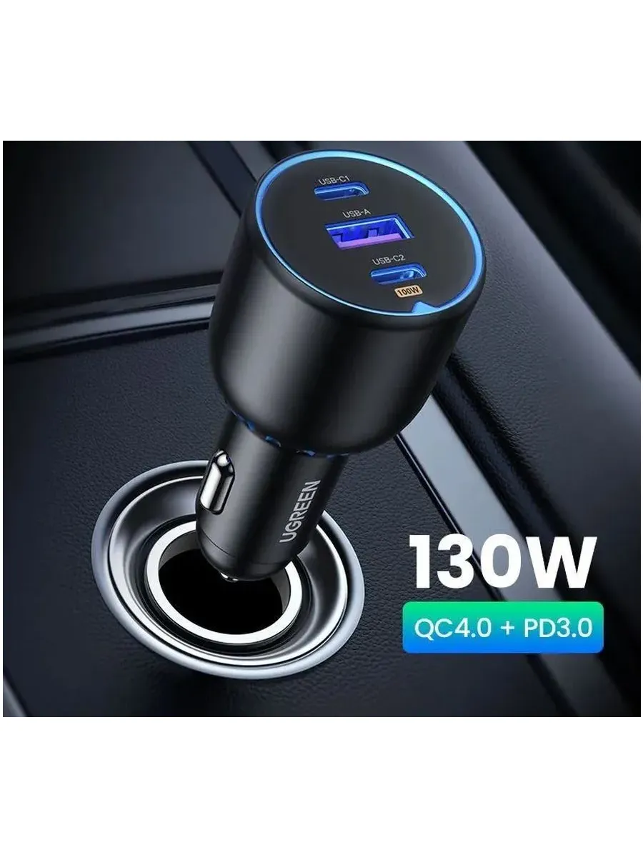 Автомобильное зарядное устройство UGREEN CD293 мощностью 130W выполнено в элегантном дизайне, может одновременно заряжать несколько устройств, что идеально подойдет для работы в дороге при повседневном использовании.