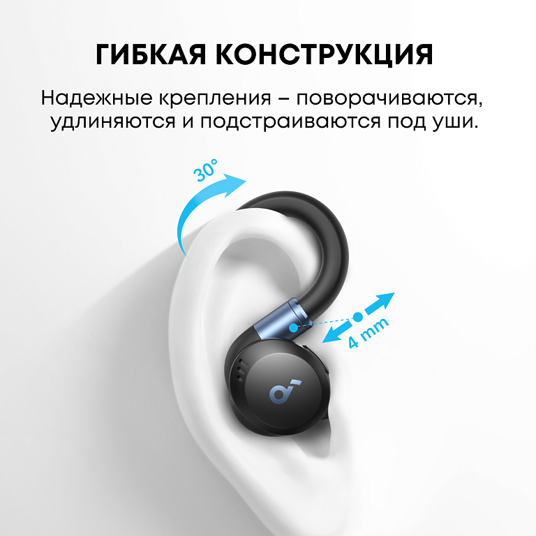 Гибкая конструкция. Sport X20 созданы для спорта – гибкие крючки надежно удерживают наушники на ушных раковинах даже во время интенсивных тренировок. Крючки поворачиваются под различными углами до 30° и удлиняются на 4 мм для идеальной посадки.