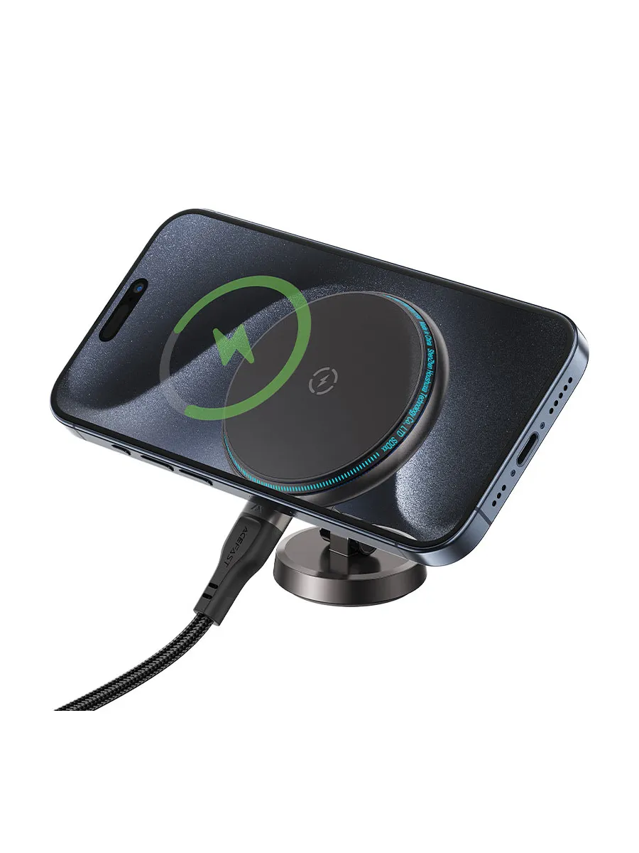 Автомобильный держатель на приборную панель D30 от Acefast обеспечивает безопасное и стабильное крепление вашего смартфона с помощью суперстильного магнита. Благодаря возможности горизонтального и вертикального крепления телефона, вы сможете удобно использовать навигатор и другие приложения. Беспроводная магнитная зарядка MagSafe гарантирует быструю и эффективную зарядку вашего устройства. Высокое качество цинкового сплава и пластика, из которых изготовлен держатель, и надёжная защита от скачков напряжения обеспечивают долговечность и безопасность использования.