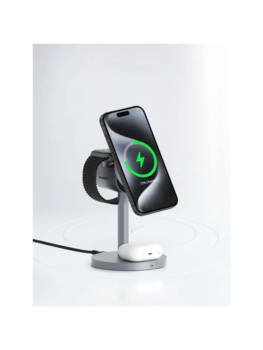 AUKEY LC-MC311 MagFusion 3-в-1 Qi2 Магнитная быстрая беспроводная зарядная станция