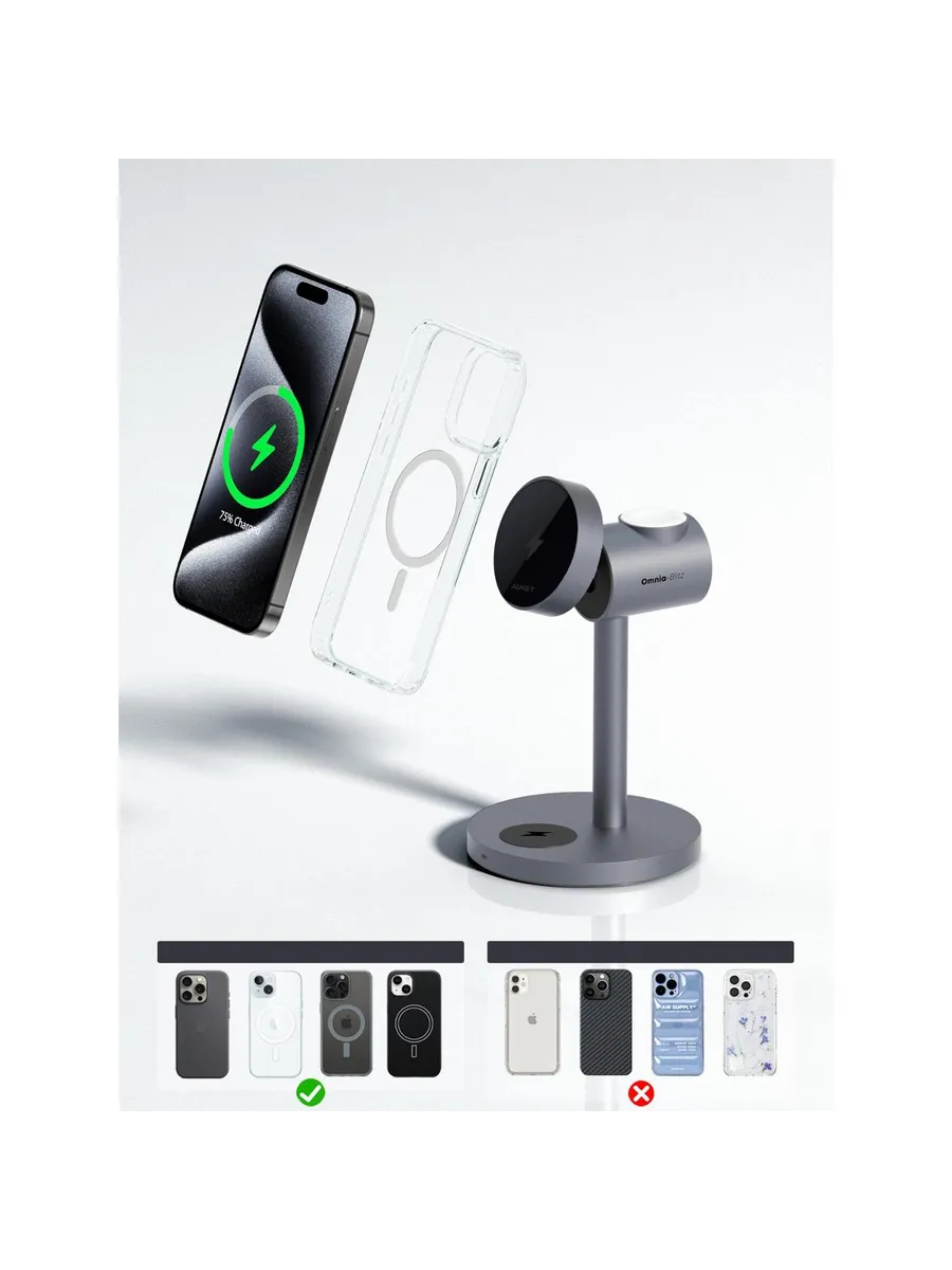 AUKEY LC-MC311 MagFusion 3-в-1 Qi2 Магнитная быстрая беспроводная зарядная станция