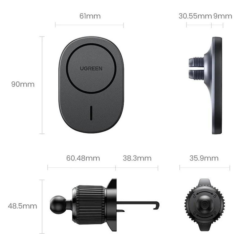 Беспроводное зарядное устройство UGREEN CD345 (25925) Magnetic Wireless Car Charger на вент отв.