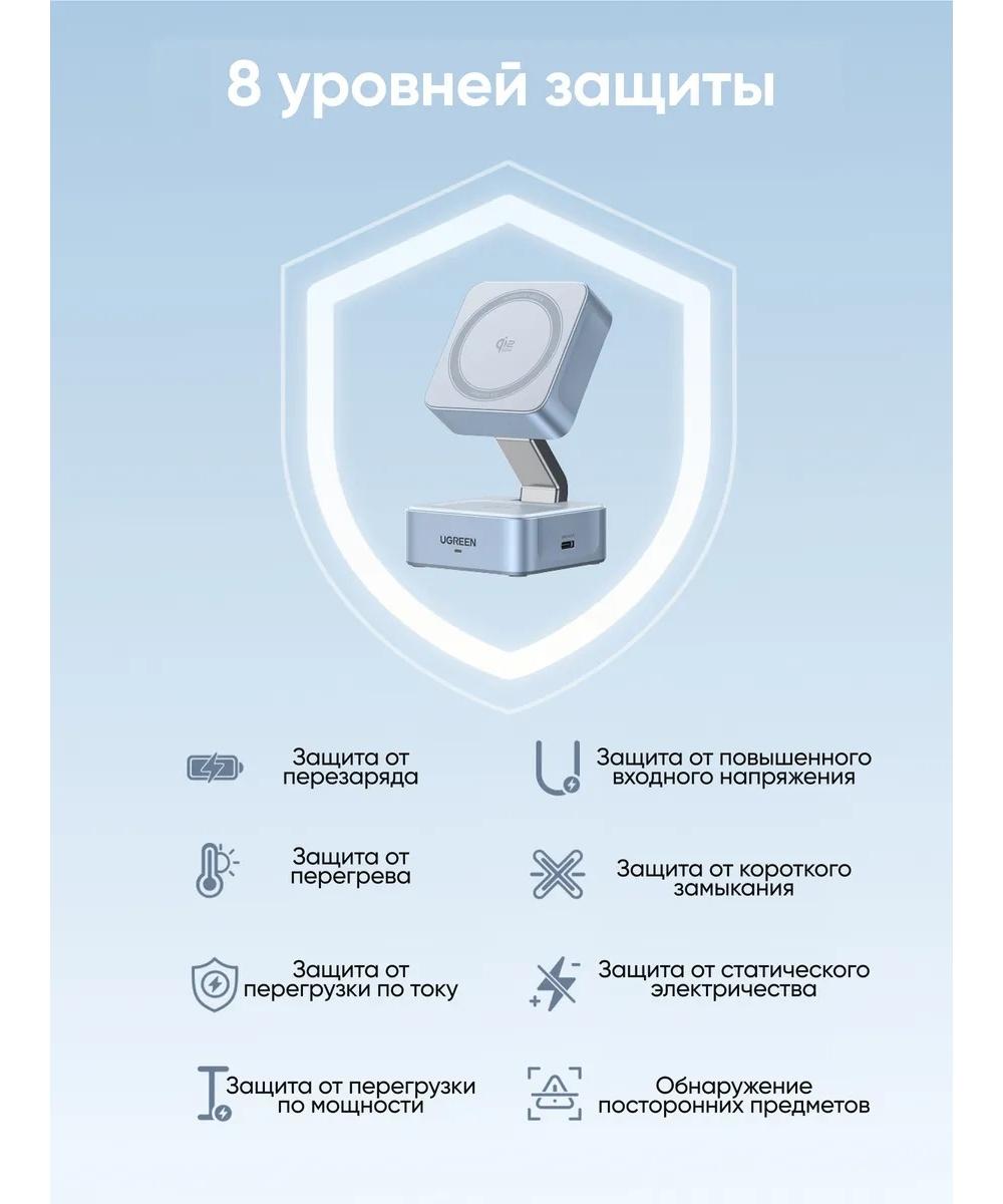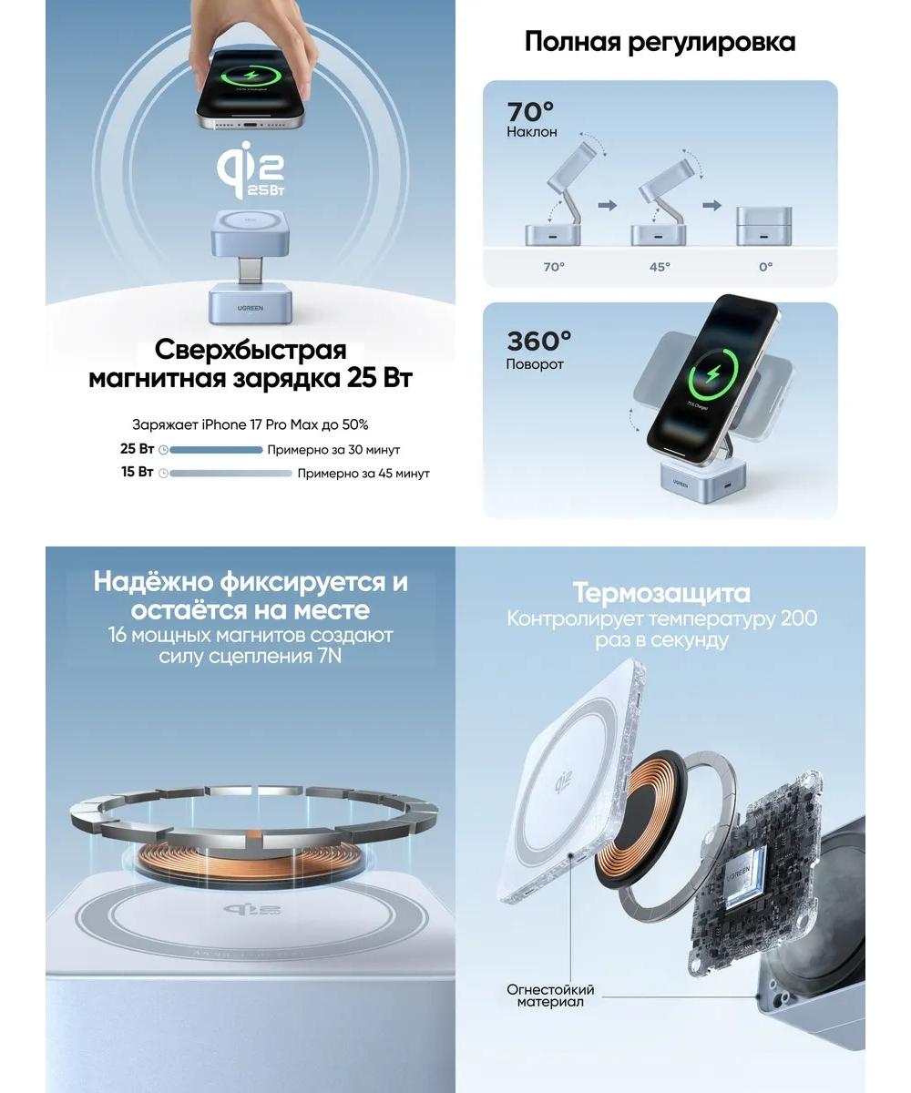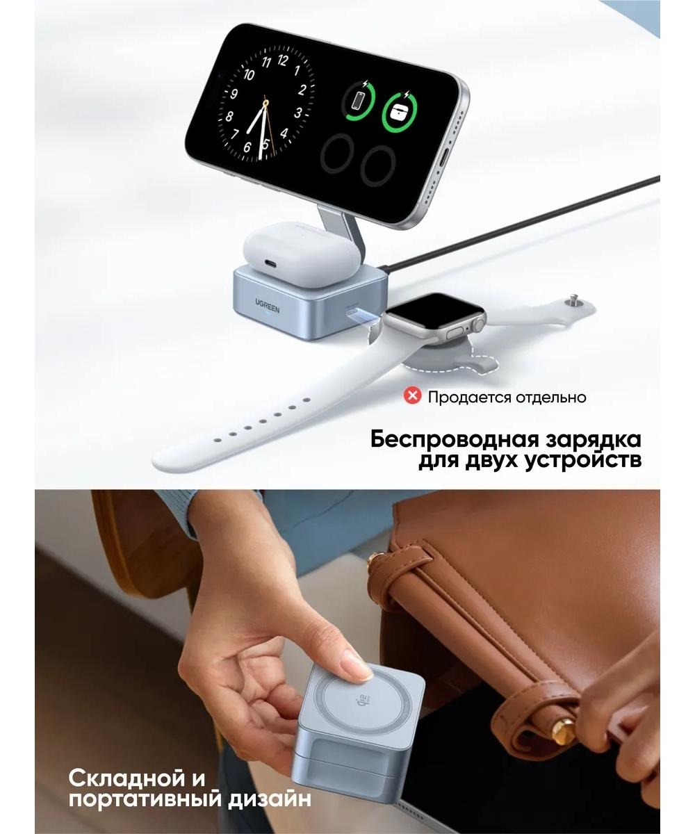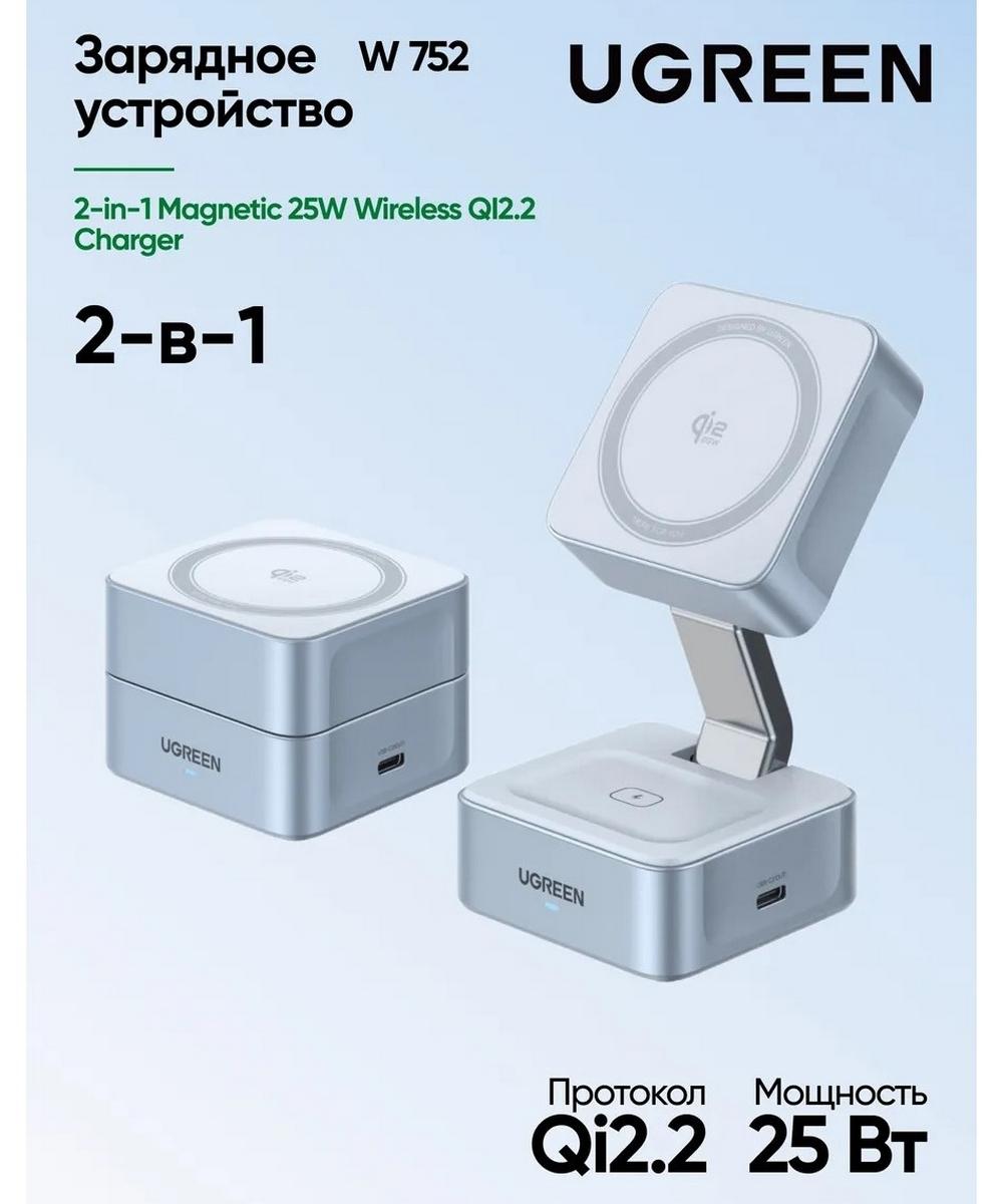 Беспроводное зарядное устройство UGREEN W752 (55960B) — компактное и функциональное решение для быстрой зарядки смартфонов и других совместимых гаджетов обеспечивает удобство использования без необходимости подключения кабелей