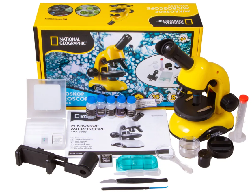 Микроскоп Bresser National Geographic Biolux 40–800x – это прекрасная возможность познакомить ребенка с удивительным микромиром. Он позволяет проводить множество исследований по методу светлого поля с использованием проходящего и отраженного света, то есть изучать можно не только прозрачные микропрепараты, но и полупрозрачные и непрозрачные образцы. Для наблюдений можно использовать как готовые наборы, так и самостоятельно приготовленные препараты. К тому же в комплект поставки уже включен набор для опытов, в котором есть все необходимое для экспериментов.