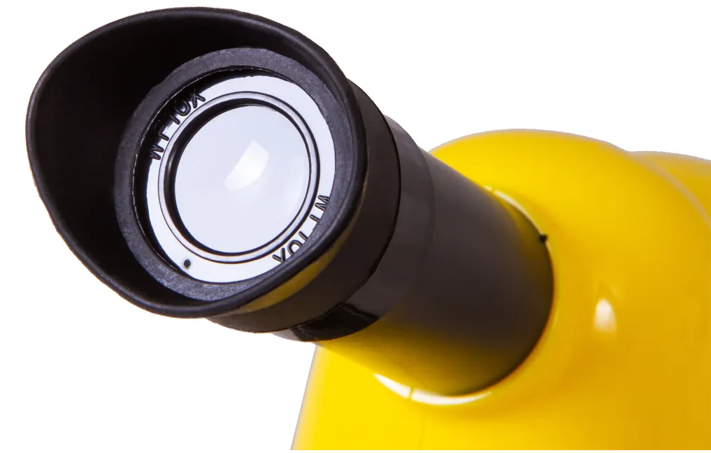 В микроскопе установлены классическая монокулярная насадка и трехгнездное револьверное устройство. Есть два окуляра разной кратности, благодаря чему общее увеличение можно выбирать в диапазоне от 40 до 800 крат. Этого вполне достаточно для выполнения школьных работ по биологии и проведения домашних научных опытов. Резкость оптики настраивается при помощи ручек грубой фокусировки.