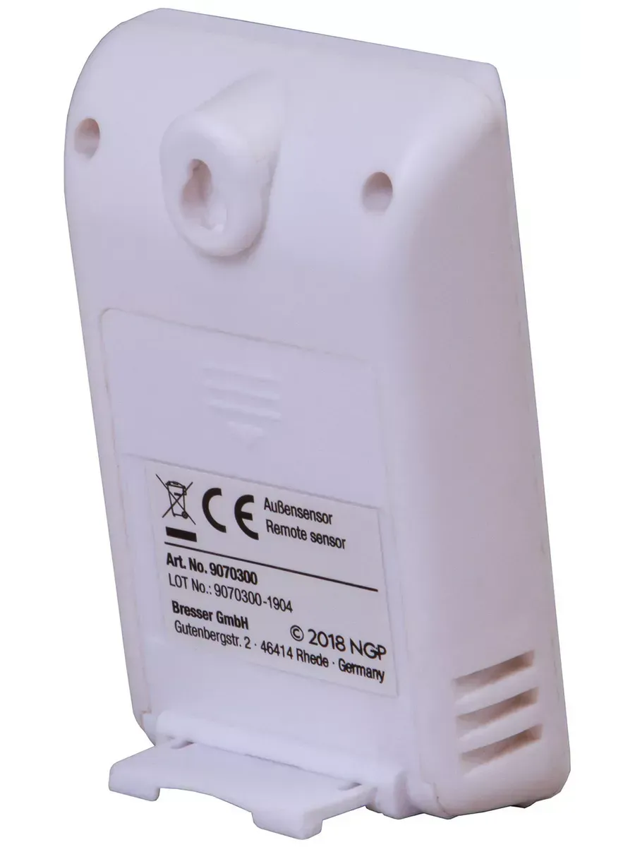 К метеостанции можно подключать до трех радиодатчиков (в комплект поставки включен только один). Для работы датчика и метеостанции требуются батарейки (приобретаются отдельно).