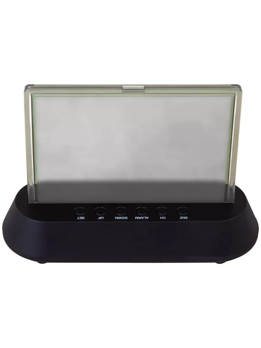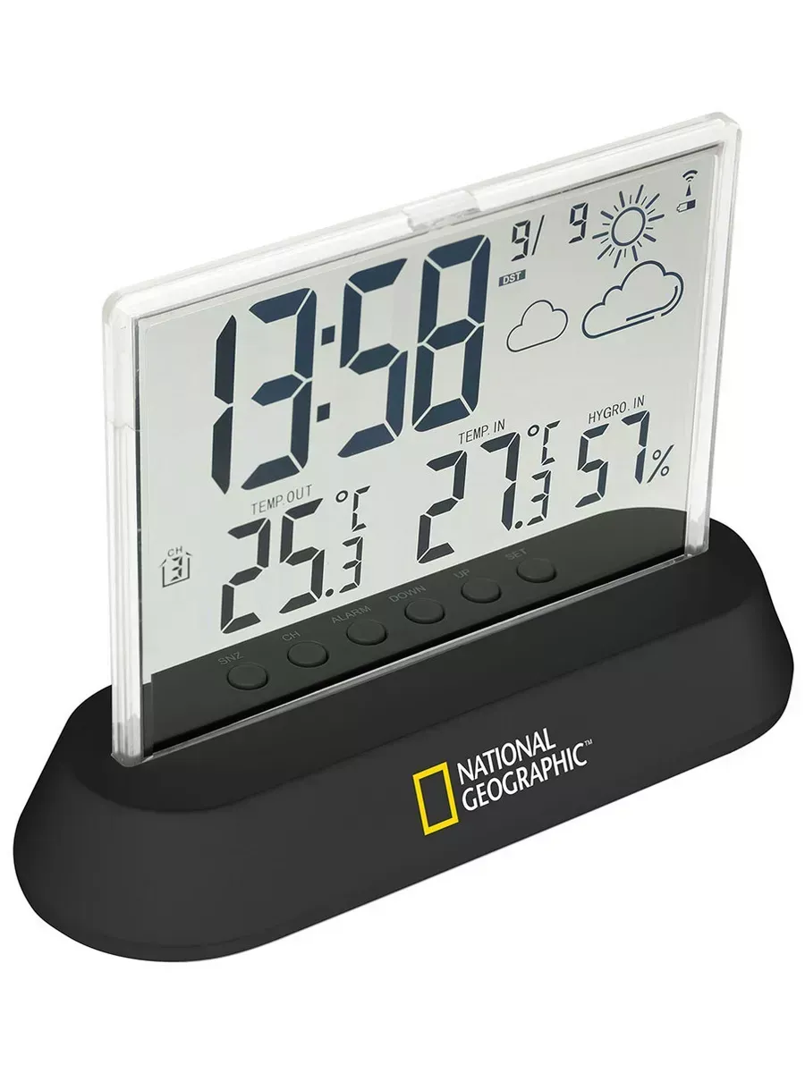 Bresser National Geographic в прозрачном корпусе настольная метеостанция, которая станет украшением дома или офиса. Ее можно поставить на стол, тумбочку или полку. Наружный датчик при этом можно разместить за окном на расстоянии до 30 метров от основного модуля. Метеостанция показывает время, составляет прогноз погоды на ближайшие 12 часов, измеряет температуру внутри и снаружи помещения, а также влажность воздуха. Вся информация выводится на встроенный экран.