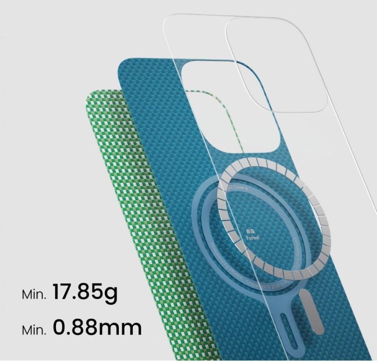 Изготовленный из 100% арамидного волокна, чехол невероятно легкий и прочный. Арамидное волокно в пять раз прочнее стали, обеспечивая превосходную защиту от ударов, царапин и падений.