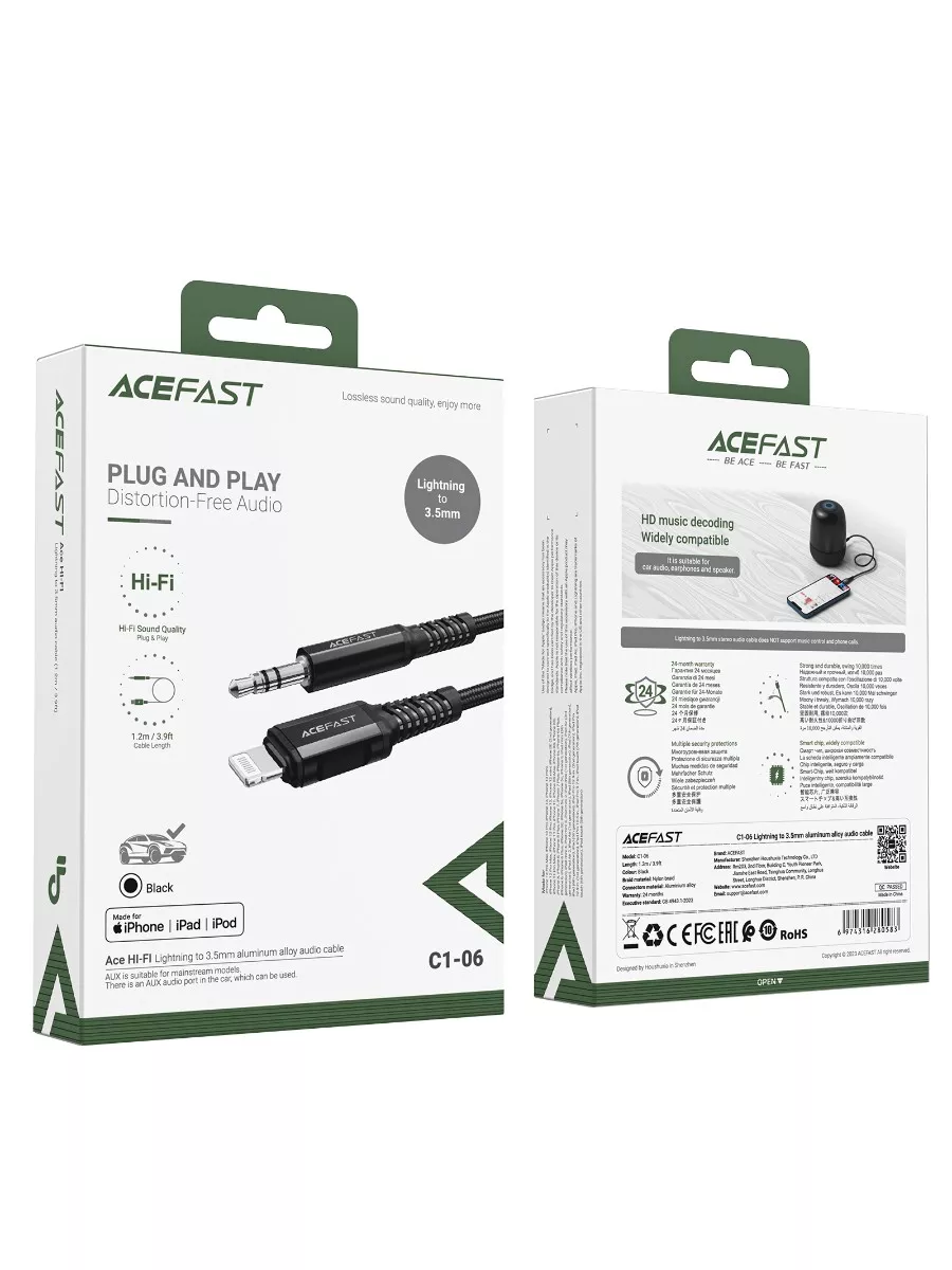 ACEFAST C1-06 — это качественный аудиокабель с разъемом Lightning на 3.5 мм, который идеально подходит для подключения устройств Apple к наушникам, динамикам или аудиосистемам. Создан для тех, кто ценит надежность, стиль и отличное качество звука.