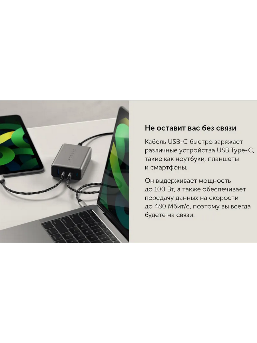 Кабель USB-C идеально сочетается с беспроводным банком питания Quatro, настольным зарядным устройством 108W Pro или зарядными станциями USB, обеспечивая питание ваших устройств, где бы вы ни находились.