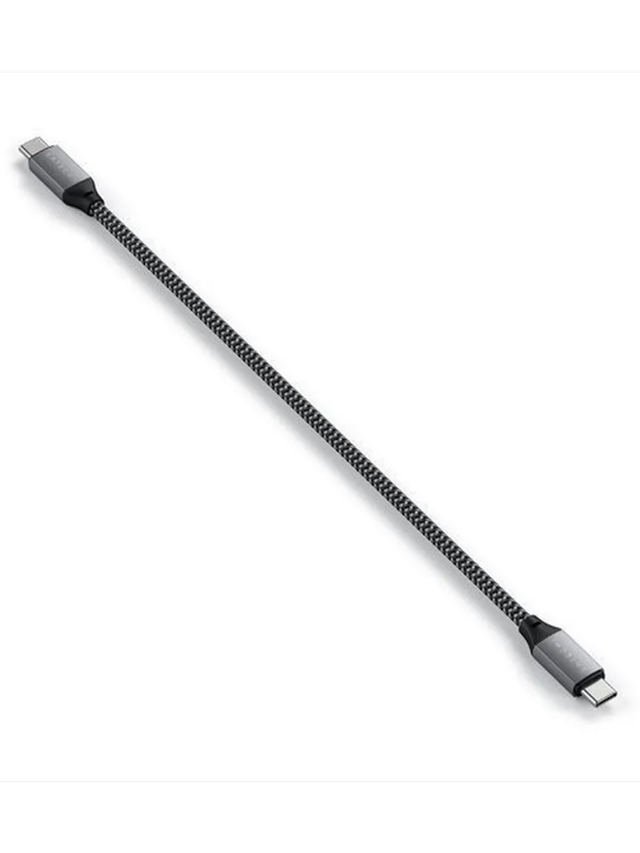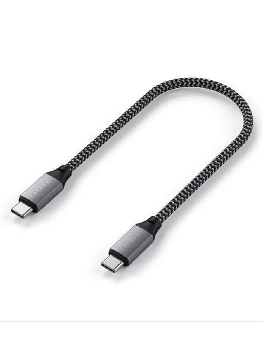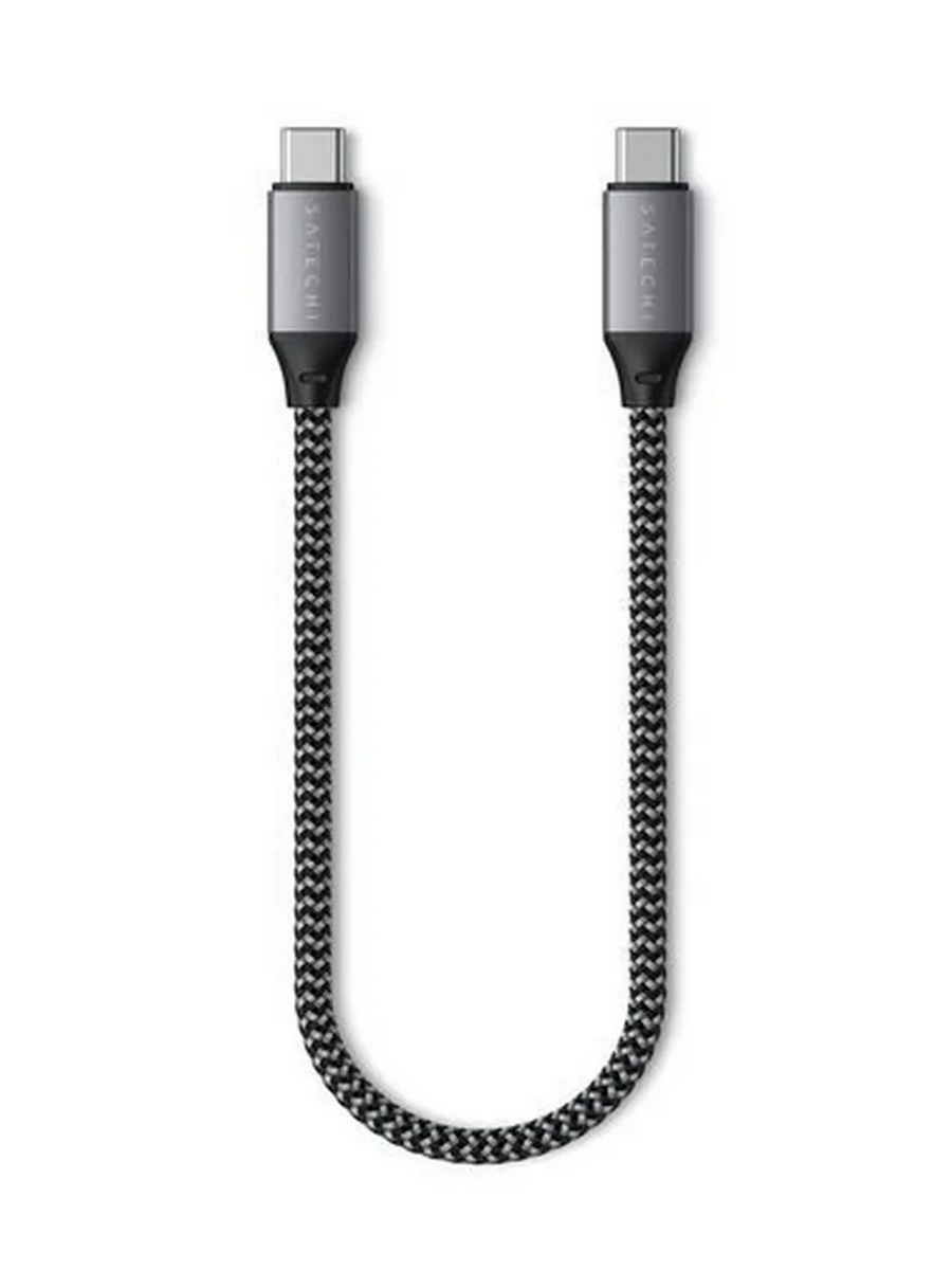 Кабель Satechi USB-C to USB-C 25 см серый космос (ST-TCC10M), отличается прочной конструкцией и меньшей длиной, что делает зарядку на ходу еще более удобной. Идеально сочетается с беспроводным аккумулятором Quatro Wireless Power Bank или настольным зарядным устройством Pro 108 Вт для быстрой подзарядки устройства Type-C.
