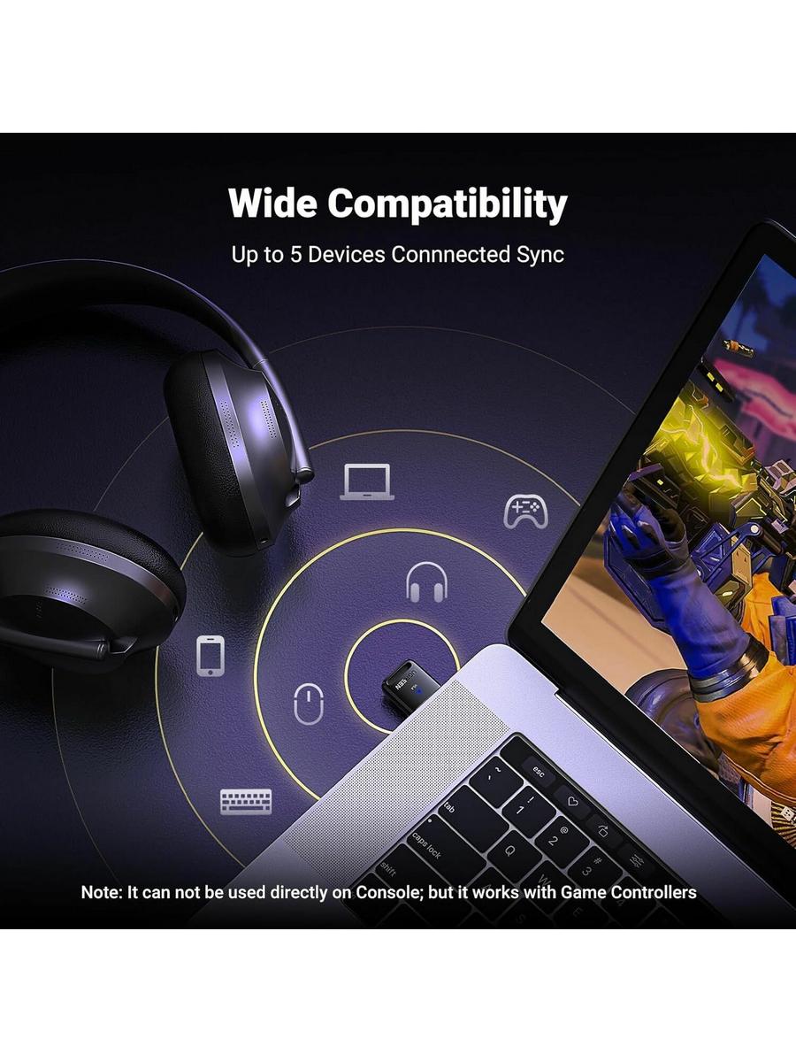 Адаптер поддерживает до 7 устройств Bluetooth одновременно, что позволяет вам одновременно подключать несколько устройств, таких как наушники, колонки, клавиатуры и многое другое.