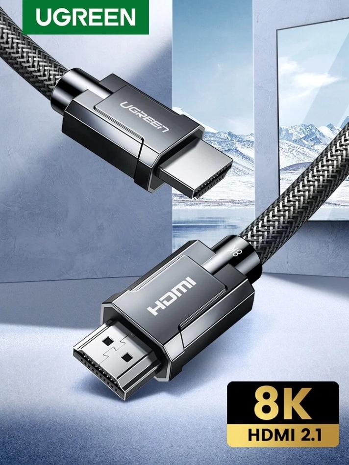 Кабель UGREEN 8K HDMI 2.1 Male To Male Cable Zinc Alloy Shell Braided 2m HD135 (70321) (Gray) – это высококачественный кабель, предназначенный для передачи видео и аудио сигнала между различными устройствами.