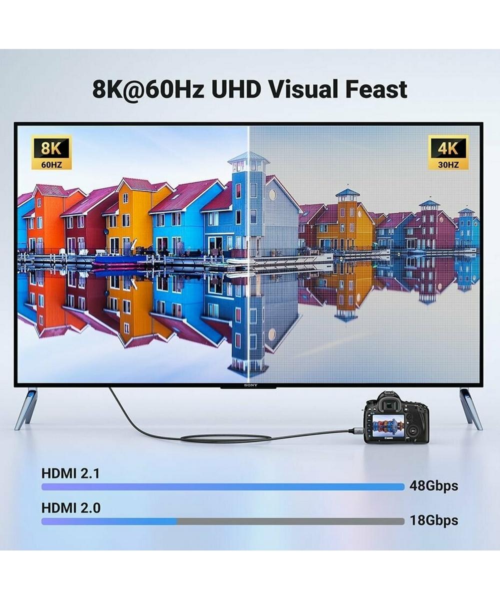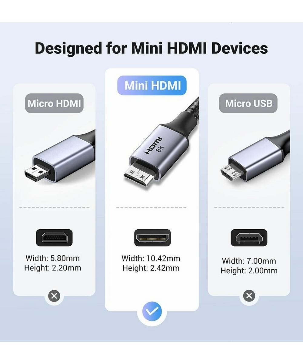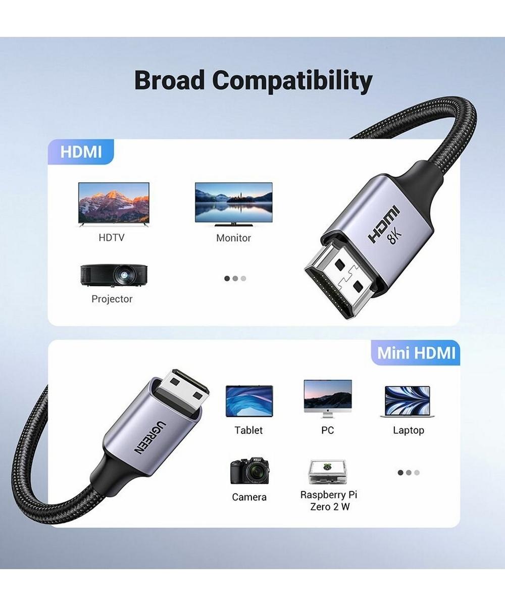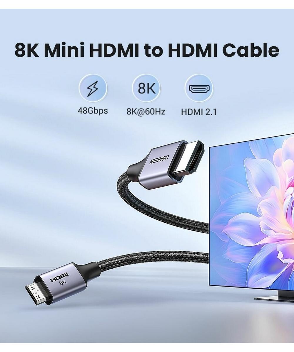 Кабель UGREEN HD163 Mini HDMI to HDMI 8K Cable - это высококачественный и надежный аксессуар для передачи видеосигнала между устройствами с разъемами HDMI.