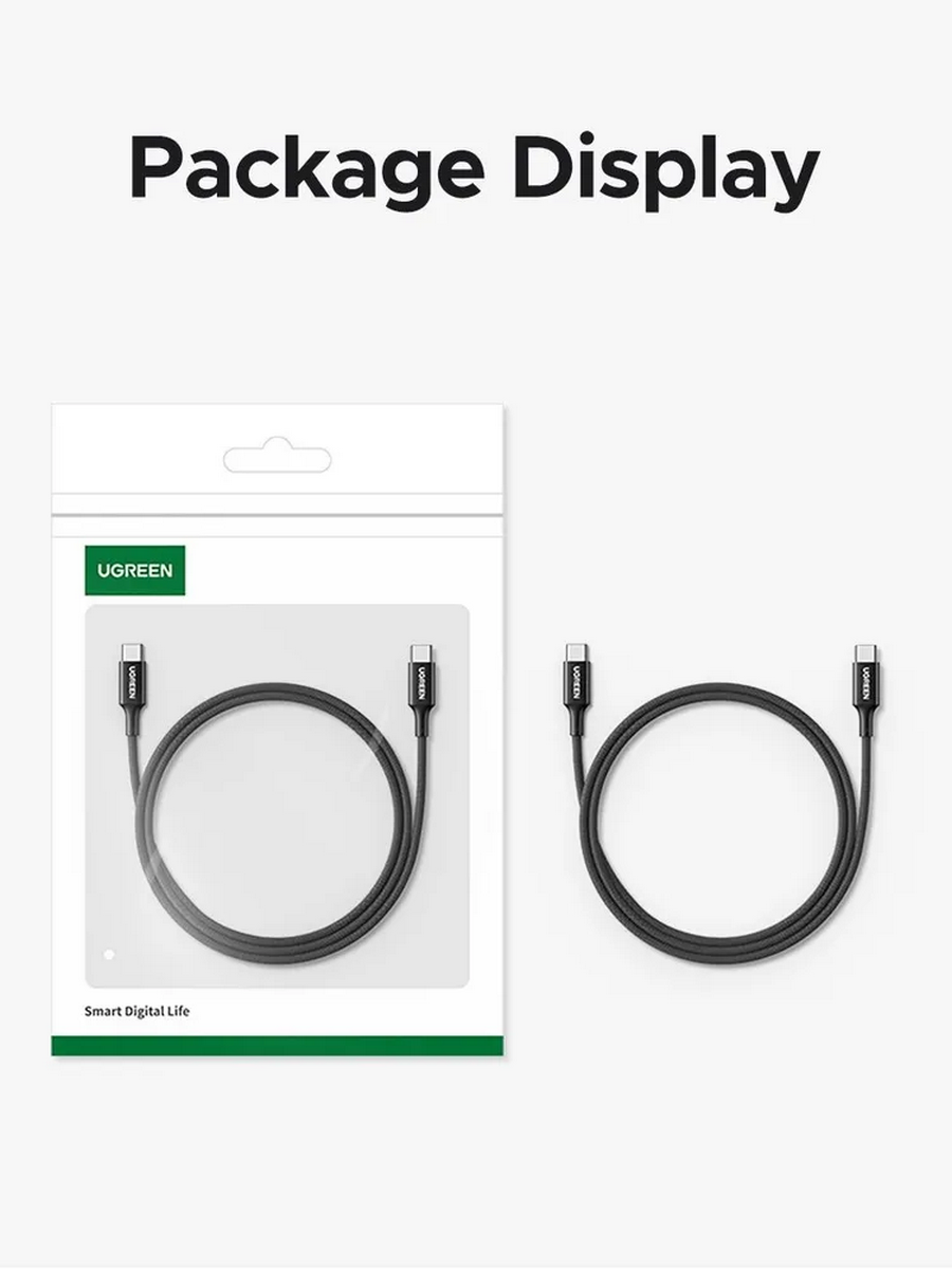 Кабель UGREEN L502 (65249) 1м 100W USB-C to USB-C PD Fast Charging Braided Cable 5A