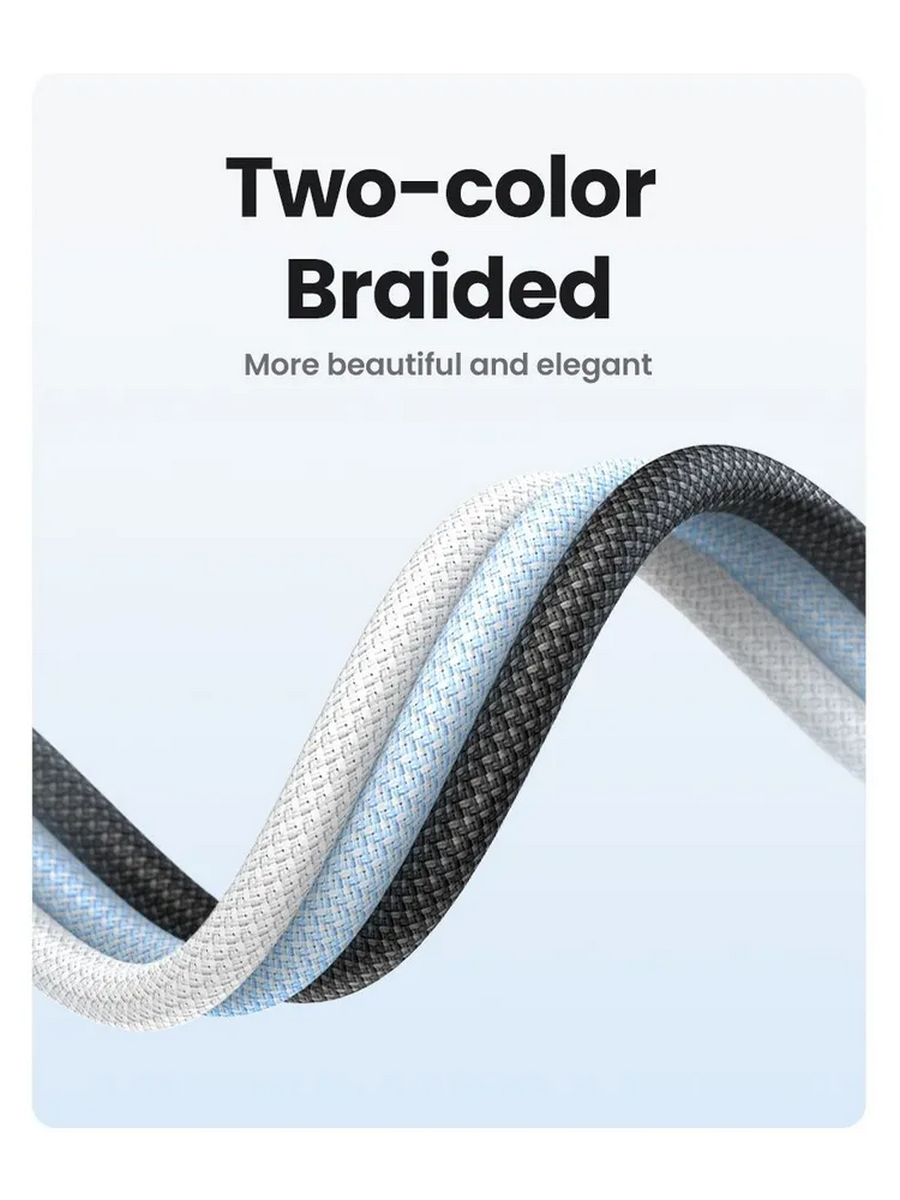 Кабель выполнен в прочной нейлоновой оплётке, устойчивой к износу и перегибам, обеспечивая длительный срок службы.