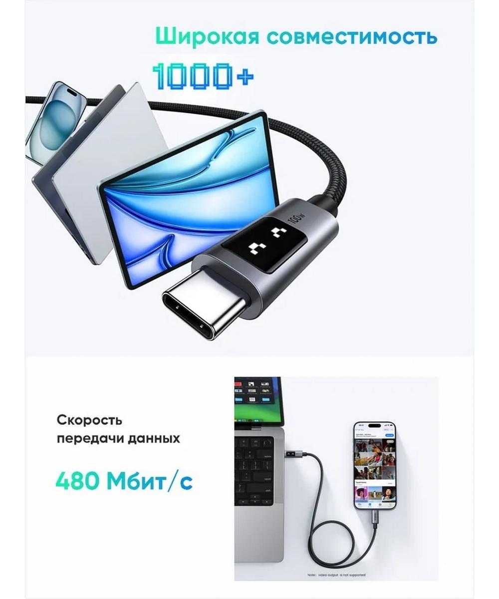 Кабель UGREEN L509 (35512) UNO Type C 2.0 Male To Type C 2.0 Male Robot 5A Data Cable поддерживает стандарты быстрой зарядки Power Delivery, Quick Charge и FCP (Huawei), что позволяет вам быстро заряжать свои устройства без необходимости использования дополнительных аксессуаров.