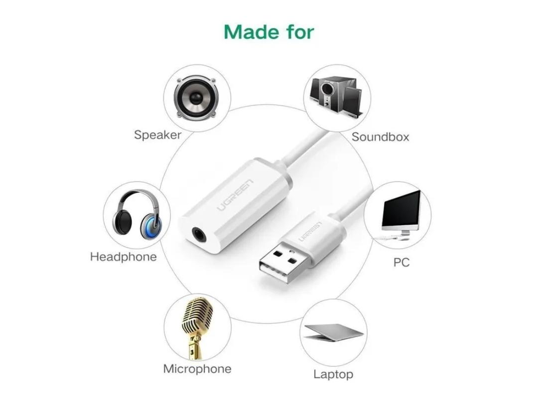 Внешняя звуковая карта USB легко добавляет к компьютеру 3,5-мм порт aux TRRS (встроенный интерфейс аудиовхода и аудиовыхода), что позволяет подключать существующую гарнитуру с 3,5-мм TRRS к ПК через USB-интерфейс. Примечание: Он не работает с гарнитурой с разделенным аудиопортом 3,5 мм для наушников и микрофона. Альтернативный USB-стереоадаптер: Он идеально подходит для обхода неисправной звуковой карты, аудиопорта или в качестве замены сломанного USB-аудиоадаптера. Превосходное качество звука: внешний звуковой адаптер USB использует передовую технологию C-Media IC для оптимального качества звука и производительности устройства. Он изготовлен из прочного корпуса из АБС-пластика и имеет сверхкомпактную конструкцию. Гибкая конструкция кабеля: длина кабеля адаптера USB-3,5 мм составляет 15 см, что обеспечивает больше места при использовании с большим количеством USB-портов на ноутбуке. Простота настройки: драйвер не требуется, просто подключи и играй! Питание от шины USB, внешнее питание не требуется. Широкая совместимость: Этот адаптер для наушников к usb работает с любой стандартной системой с поддержкой аудиокласса USB, включая Windows 10/8.1/8/7 / Vista / XP, Mac OS X, Linux и PS4, Google Chromebook, Windows Surface 3 pro, Raspberry Pi и т.д.