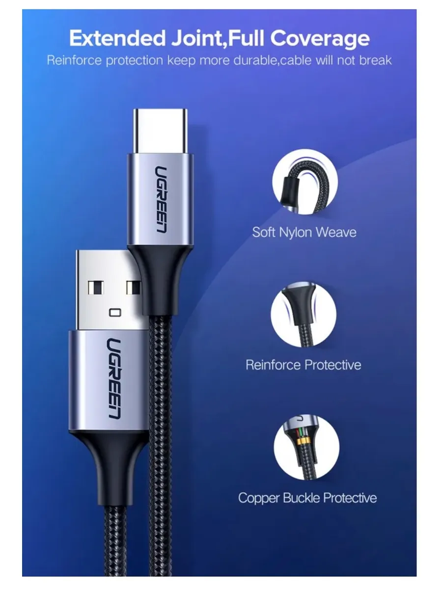 Кабель UGREEN US288 (60126) 1 m Black USB-A 2.0 to USB-C Cable Nickel Plating Aluminum Braid