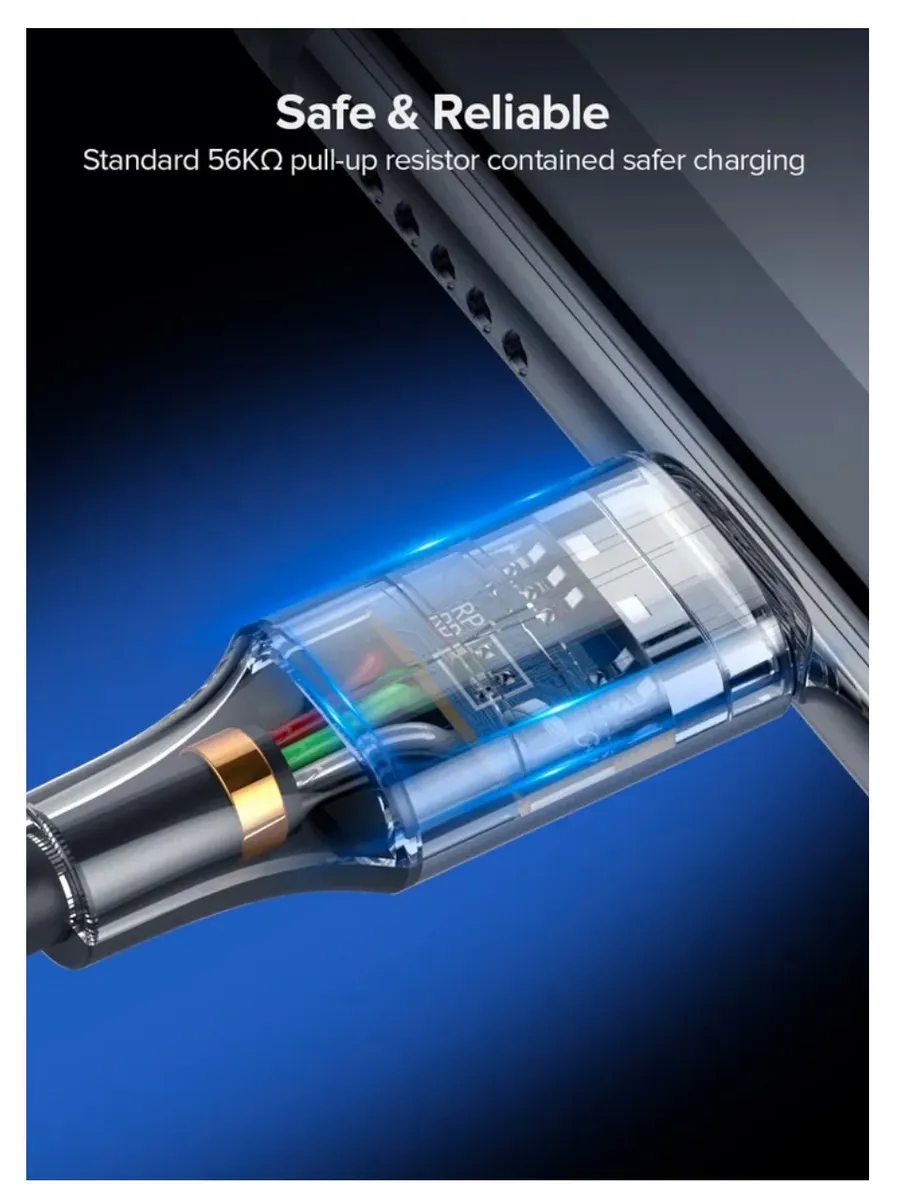 Этот кабель USB-C полностью соответствует протоколу быстрой зарядки QC и имеет встроенный подтягивающий резистор 56 кОм, модернизированный интеллектуальный чип с множественной защитой внутри. Это зарядное устройство Type C обеспечивает надежную проводимость и стабильный зарядный ток, защищая ваши смартфоны от повреждений из-за перегрузки по току или перенапряжения.