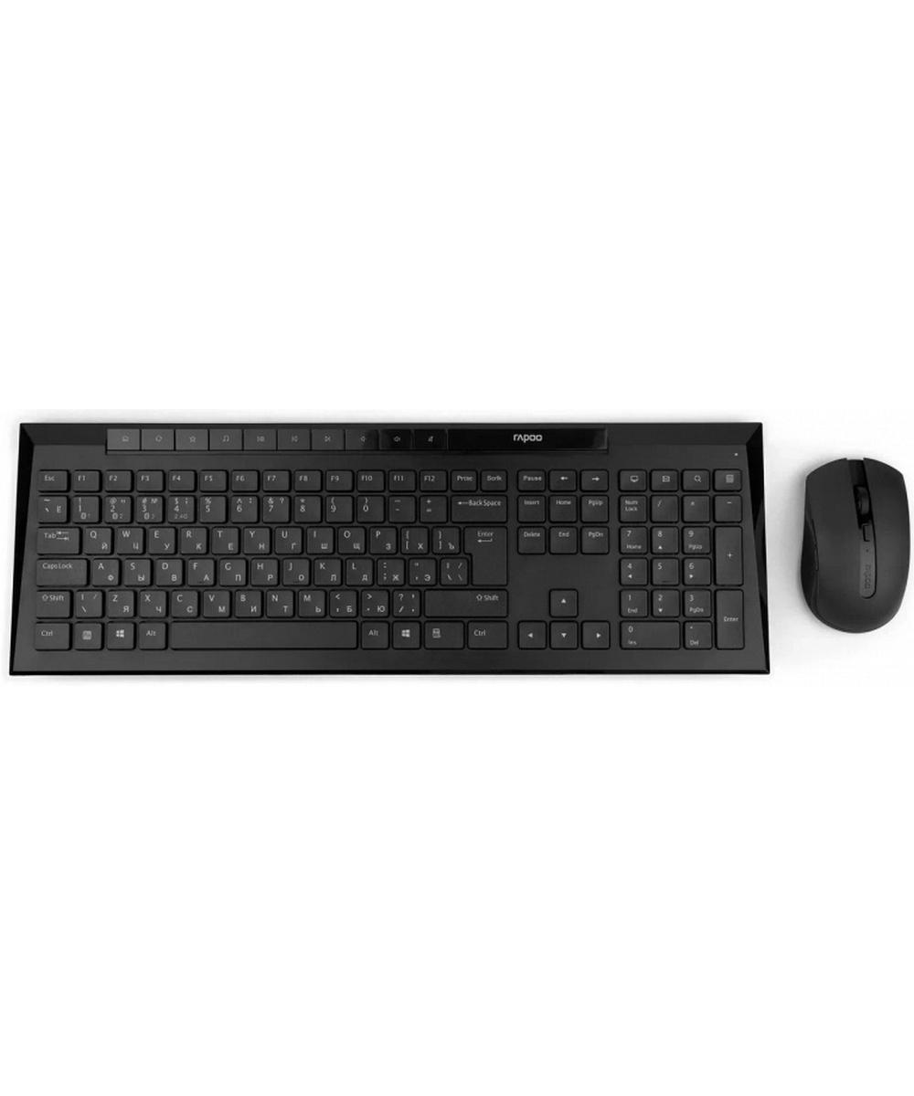Клавиатура и мышь беспроводные RAPOO 8210M (чёрный) RAPOO 8210M — это удобный беспроводной комплект, включающий клавиатуру и мышь, идеально подходящий для работы дома и в офисе. Он обеспечивает стабильное подключение, комфорт при использовании и длительное время работы от батареек. Преимущества: Поддерживает подключение по Bluetooth (версии 3.0, 4.0 и 5.0) и радиоканалу 2,4 ГГц через USB-приёмник. Можно подключить к нескольким устройствам и легко переключаться между ними. Клавиатура защищена от брызг, устойчива к случайному проливу жидкости. Удобные мультимедийные клавиши для управления музыкой, громкостью и другими функциями. Оптическая мышь с регулируемым разрешением от 600 до 1600 DPI, подходит как для точной работы, так и для быстрой навигации. Тихие кнопки мыши обеспечивают комфортную работу без лишнего шума. Длительное время работы — клавиатура до 12 месяцев, мышь до 9 месяцев на стандартных батарейках AA. Основные характеристики: Тип подключения — беспроводной (Bluetooth и USB-приёмник 2,4 ГГц) Дальность работы — до 10 метров Тип клавиатуры — мембранная, низкопрофильная, влагозащищённая Тип мыши — оптическая, с 5 кнопками Разрешение мыши — 600–1600 DPI Совместимость — Windows, macOS, Android, iOS, Chrome OS, Linux Цвет — чёрный