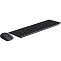 Клавиатура выполнена в стандартном формате и оснащена ножничным механизмом низкопрофильных клавиш, что обеспечивает тихий и комфортный набор текста. Всего предусмотрено 110 клавиш с белой английской раскладкой, есть световые индикаторы и удобная подставка под запястья. Клавиатура питается от двух батареек AAA и также способна работать до 12 месяцев без замены элементов питания. Ресурс клавиш рассчитан примерно на 5 миллионов нажатий.