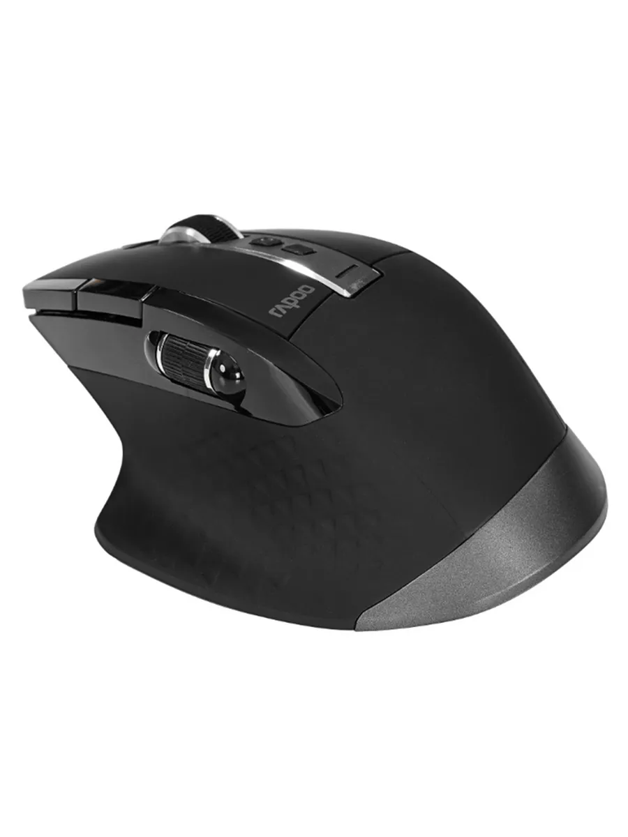Мышь с оптическим светодиодным сенсором точно распознает перемещения и позиционирует курсор. Разрешение датчика можно регулировать от 600 до 3200 dpi, что помогает настраивать скорость перемещения. Мышь оборудована 9 кнопками для удобной навигации. Устройства из комплекта Rapoo 9900M подключаются беспроводным способом с помощью радиоканальной технологии на частоте 2.4 ГГц при использовании ресивера USB и по интерфейсу Bluetooth. Автономная работа клавиатуры и мыши осуществляется от батареек.