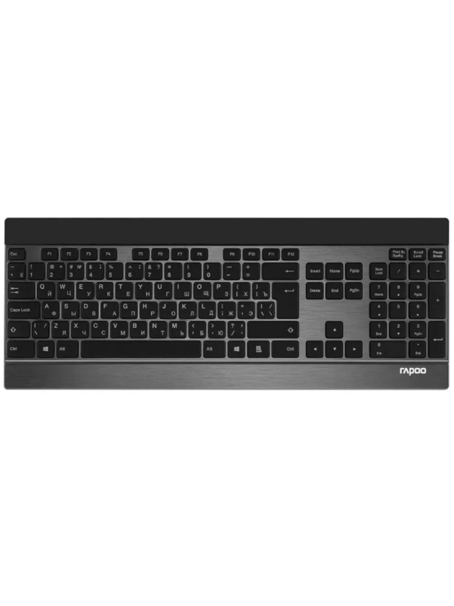 Клавиатура+мышь беспроводная Rapoo 9900M – комплект из двух устройств, которые обеспечивают удобство работы в различных программах на компьютере. Благодаря ножничному механизму и низкопрофильной конструкции клавиши точно распознают нажатия, при этом отличаются коротким ходом и уменьшенным усилием на нажатия. Съемная подставка повышает комфорт за счет снижения усталости запястий в процессе продолжительной работы с данными.