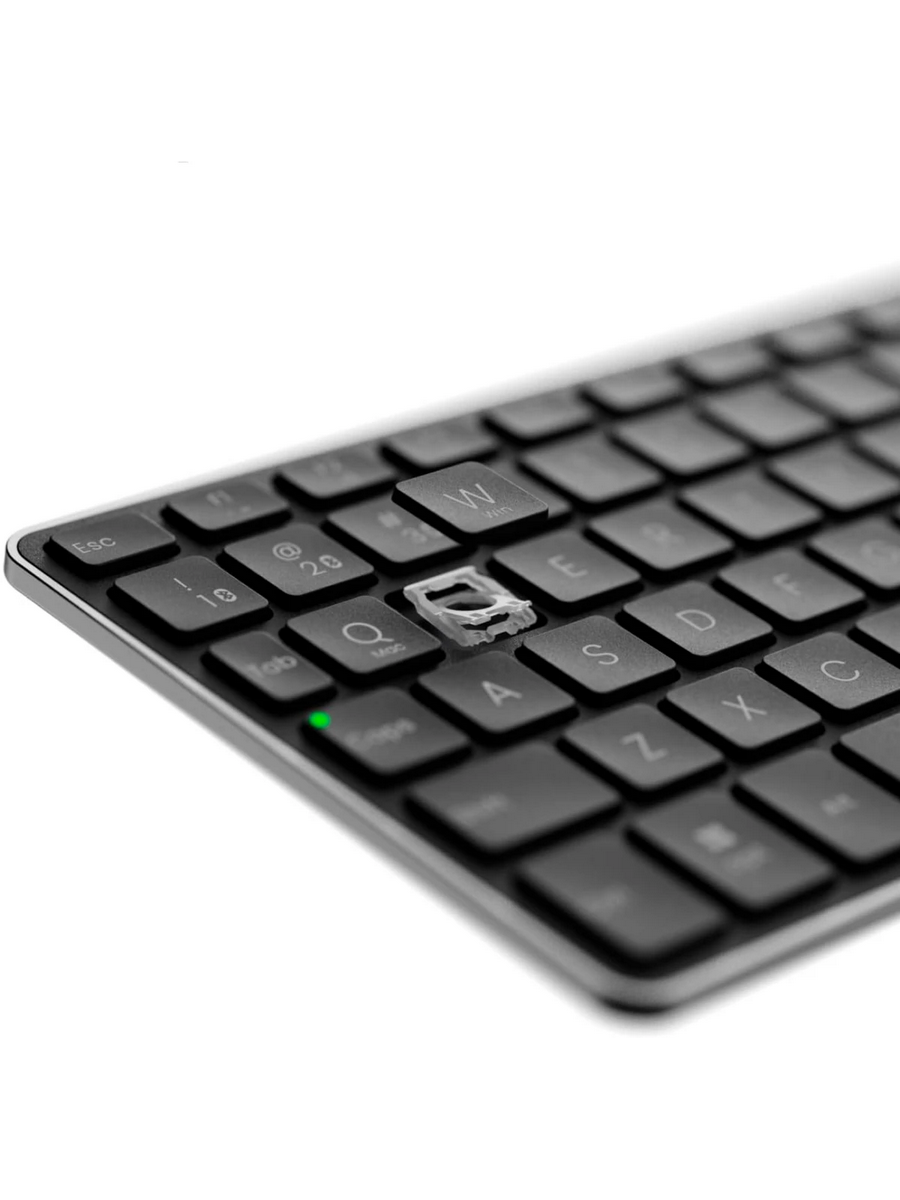 Механика клавиш построена на надёжной ножничной конструкции, которая гарантирует чёткость, отзывчивость и тишину при работе. Каждое нажатие получается лёгким и точным, что особенно важно при длительном наборе текста. Устройство выполнено в стильном тёмно-сером и чёрном цветовом решении, которое будет гармонично смотреться с любой техникой и в любом интерьере.