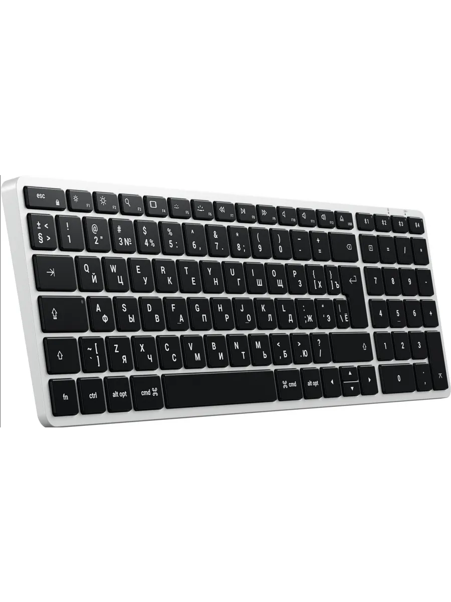 Беспроводная клавиатура Satechi Slim X2 Bluetooth Keyboard популярна среди пользователей. Раскладка клавиатуры — английская/русская. К услугам пользователя выделенный блок цифровых клавиш. Белая подсветка не только помогает с комфортом использовать клавиатуру вне зависимости от условий освещения, но и подчеркивает стильный дизайн.