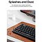Мембранный механизм клавиш обеспечивает тихое и плавное нажатие, а корпус из прочного ABS‑пластика гарантирует устойчивость к износу и ударам. Для комфортной работы предусмотрены регулируемые опорные ножки, позволяющие выбрать оптимальный угол наклона. Устройство экономично расходует энергию: через 15 секунд бездействия оно переходит в энергосберегающий режим, а индикатор низкого заряда батареи заблаговременно предупреждает о необходимости замены элемента питания (используется одна батарейка AAA).