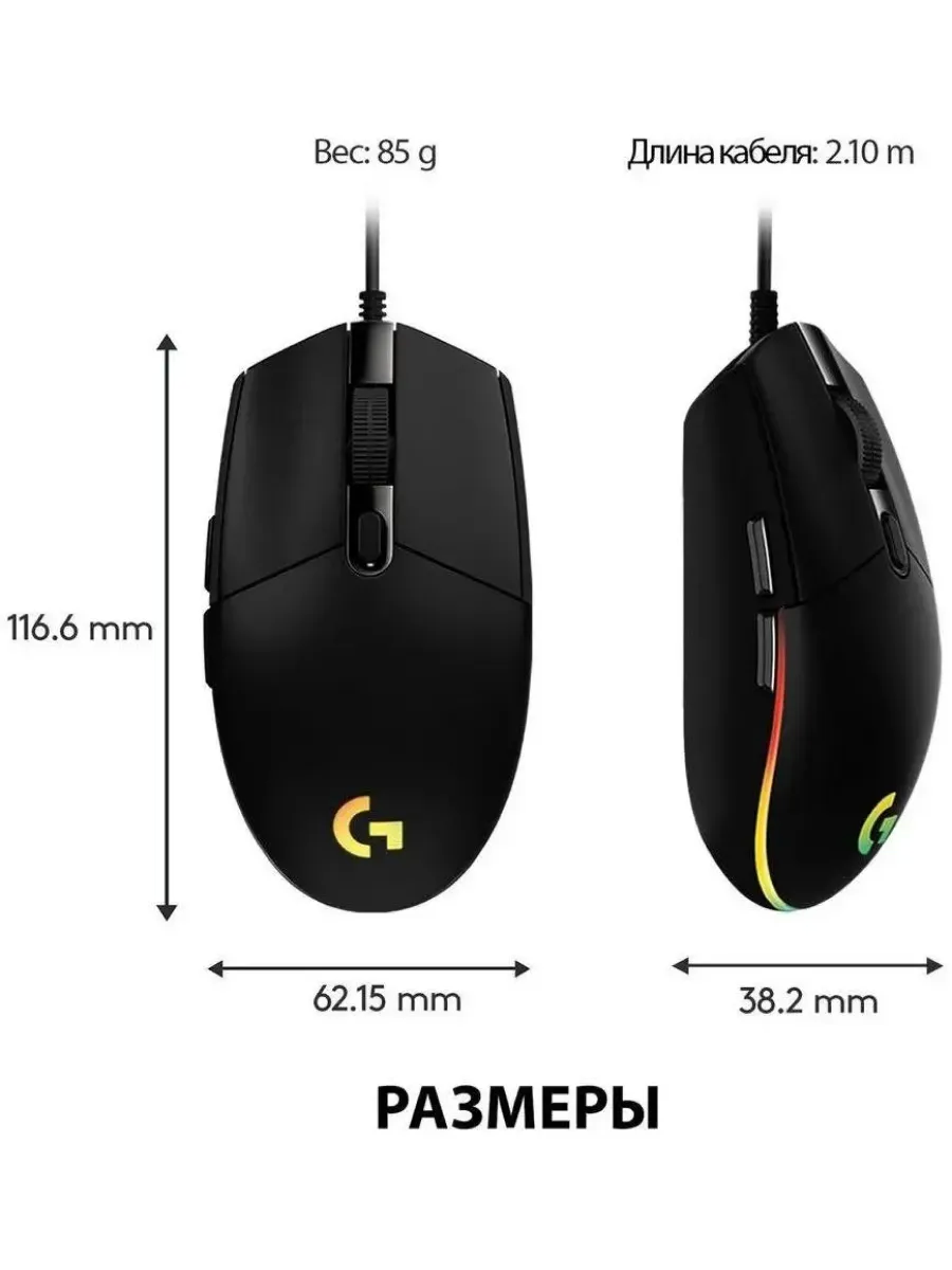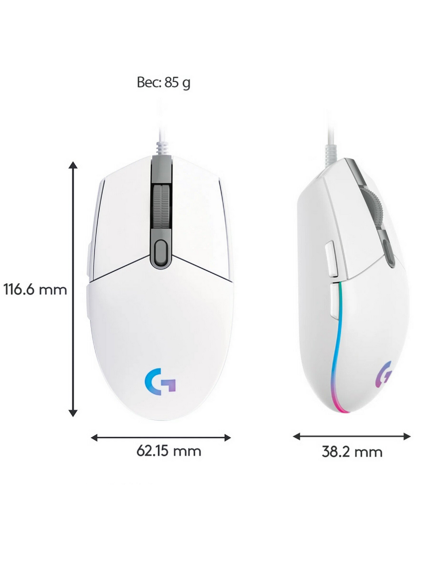 Мышь Logitech G102 Lightsync - это качественная игровая мышь с отличными характеристиками для своего ценового сегмента. Благодаря широкому диапазону разрешения, настраиваемой подсветке и эргономичному дизайну, она отлично подходит как для игр, так и для повседневного использования. Компактные размеры и легкий вес делают её удобной для длительного использования.
