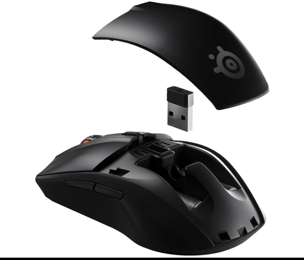 Внутри беспроводной мышки есть специальный отсек для USB-передатчика, поэтому вы не потеряете его во время какой-то поездки или путешествия. Плюс к тому, SteelSeries Rival 3 Wireless может работать и лишь от одной батарейки, что заметно снизит ее вес и улучшит управляемость.