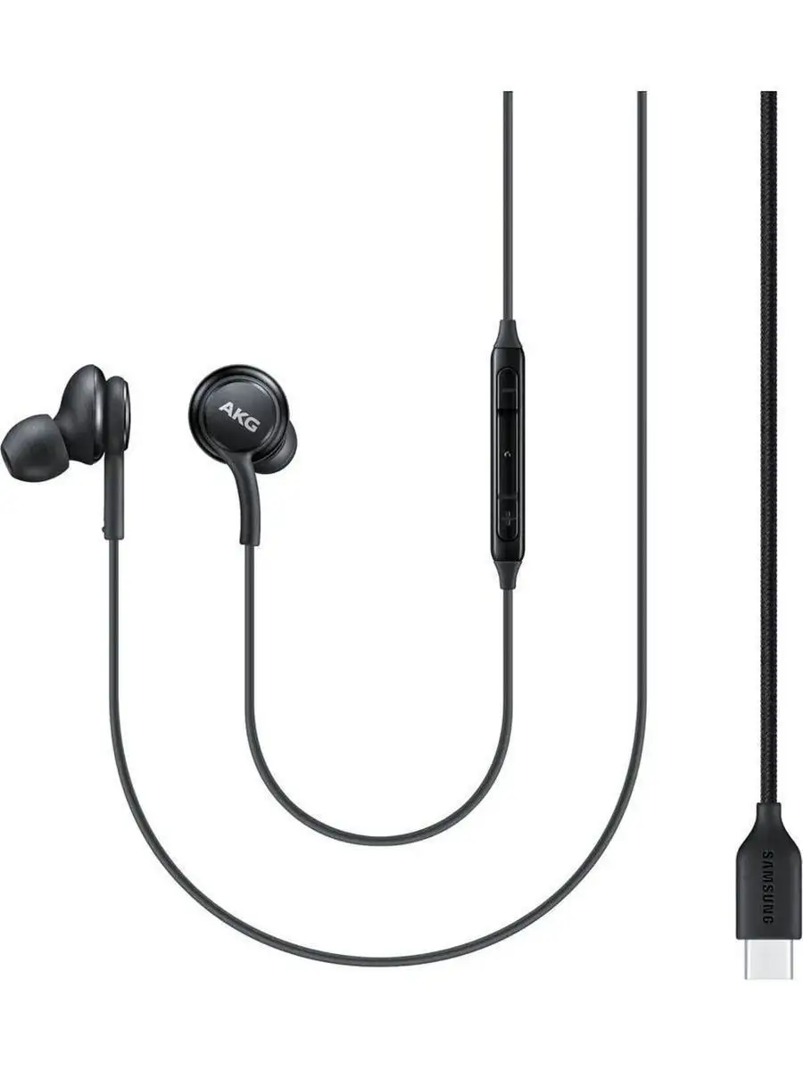 На кабеле расположен встроенный микрофон и пульт управления, позволяющий отвечать на звонки, регулировать громкость и управлять воспроизведением музыки. Наушники подключаются через разъём USB-C и идеально подходят для современных смартфонов Samsung Galaxy и других устройств с таким портом.
