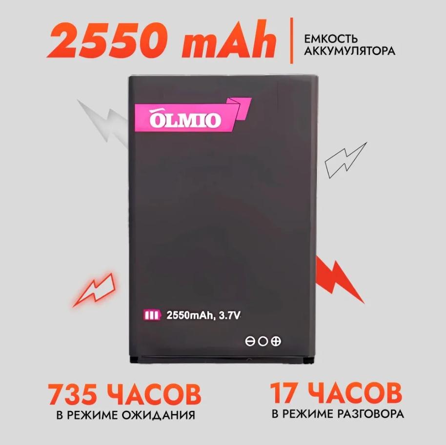 Современные смартфоны требуют зарядки каждый день. С OLMIO X02 Вы не будете зависеть от розеток. Фирменный литий-ионный аккумулятор имеет 2550 mAh ёмкости и держит заряд до 40 дней в режиме ожидания.