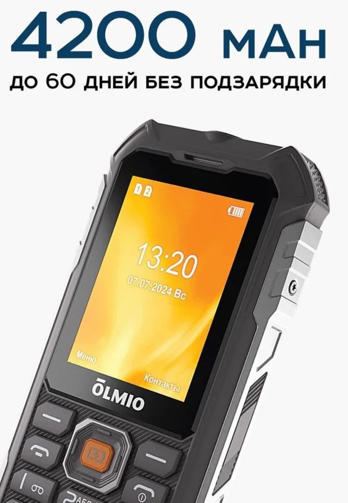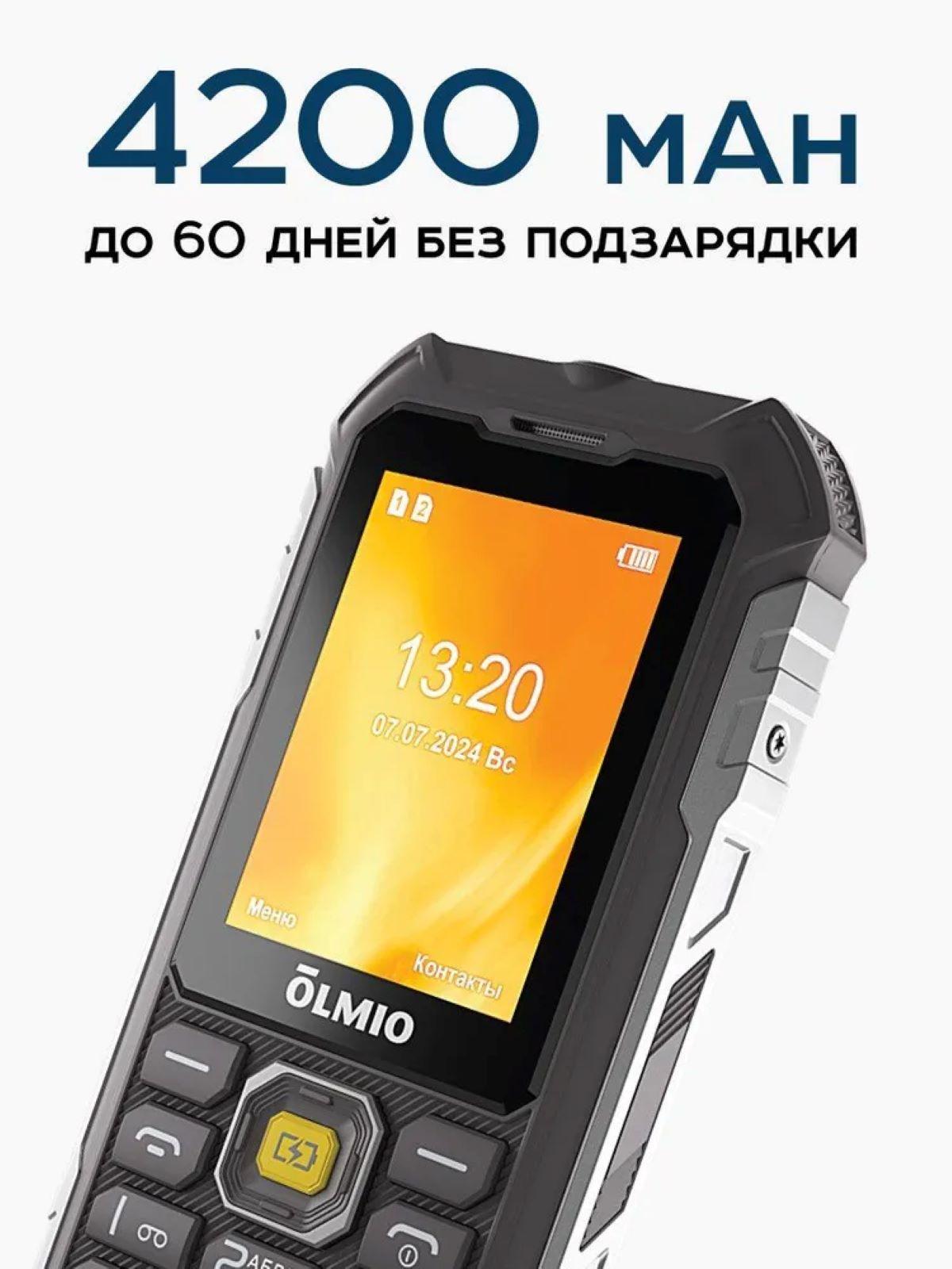 Противоударный, защищенный телефон Olmio X07 с Powerbank функцией, защитой IP68 и усиленным корпусом — это надежный кнопочный телефон, специально разработанный для работы в экстремальных условиях и активного отдыха. Оснащен мощным аккумулятором на 4200 мАч и функцией powerbank, позволяя заряжать другие устройства в любой ситуации. Olmio X07 идеально подходит тем, кто ищет надежность, защиту и длительное время автономной работы. Усиленный корпус с защитой IP68 позволяет телефону выдерживать пыль, воду и удары, что делает его оптимальным выбором для экстремальных условий. Две активные SIM-карты обеспечивают удобство для путешествий и работы, а интуитивно понятный интерфейс с удобным управлением включает в себя камеру, беспроводное FM-радио, Bluetooth, громкий динамик и светодиодный фонарик — всё, что нужно для комфортного использования.