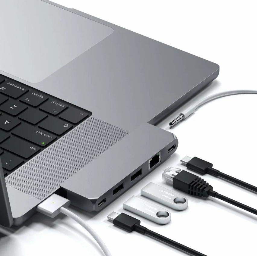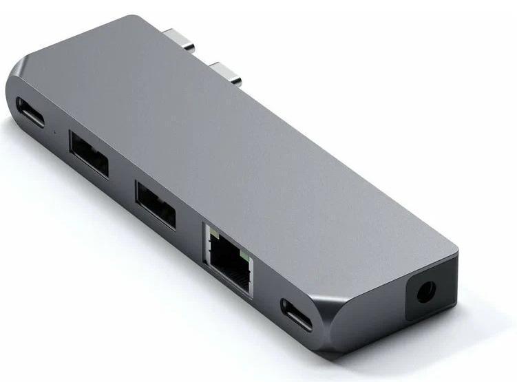 Компактный и надёжный Satechi Aluminum Type-C Pro Hub создан специально для вашего MacBook c чипом М1 и выше (хотя подойдет и для старых на Intel) Этот хаб превратит два порта Thunderbolt 3 в целую станцию для периферийного оборудования. Хаб оснащён:1 портом USB 4.0, 2 порта USB-A 3.0, 1 порт GigabitEthernet, 1 порт USB-C, 1 порт Audiojack Вы сможете в одно мгновение подключать к своему MacBook разнообразные гаджеты. Для подключения сетевого кабеля — вход Gigabit Ethernet, поддерживающий скорость до 1000 Mbps. Самое главное, что Satechi Aluminum Type-C Pro Hub не требует установки драйверов или дополнительного ПО. Изящный, компактный и функциональный, он позволит вам организовать порядок на своём рабочем столе, обеспечив ваш лэптоп необходимым функционалом.