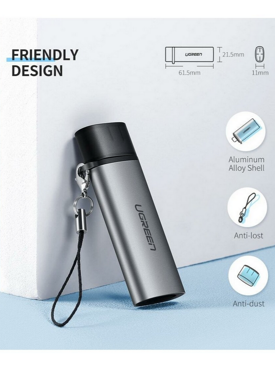 Кардридер USB C снабжен интерфейсом USB 3.1 с максимальной скоростью передачи данных до 5 Гбит/с, что позволяет экономить время.