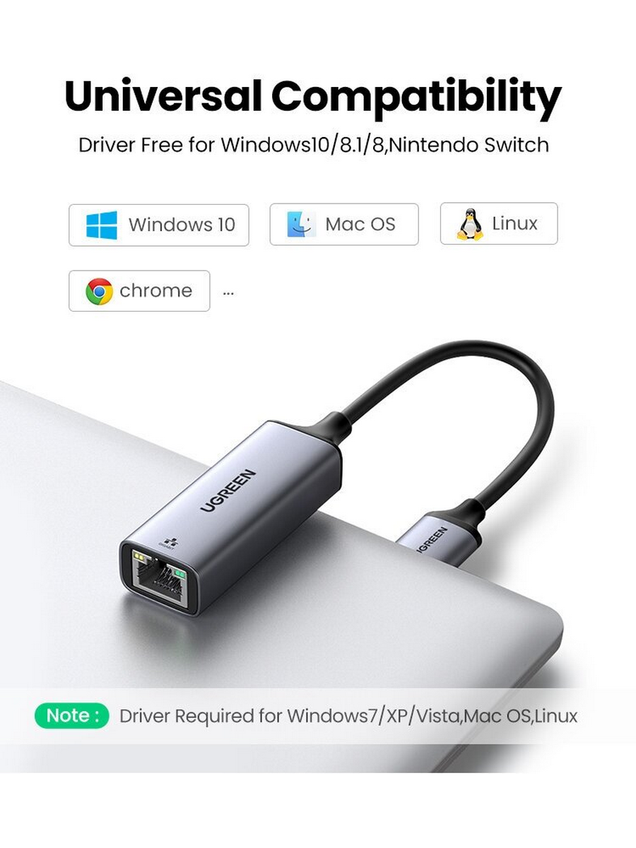 Защита, замена или добавление порта Ethernet: Гигабитный сетевой адаптер USB 3.0 является хорошим аксессуаром для защиты или замены порта RJ45 Lan вашего дорогого компьютера. Просто добавьте стандартный порт RJ45 к вашему ультрабуку, ноутбуку, Nintendo Switch или Macbook Air для передачи файлов, видеоконференций, игр и потоковой передачи HD-видео.