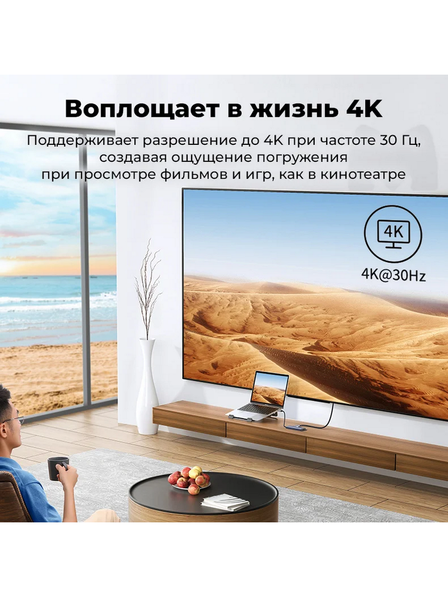Порт HDMI для просмотра видео в формате 4K UHD: зеркально отображайте или расширяйте экран с помощью адаптера UGREEN USB-C. Порт HDMI позволяет напрямую транслировать видео в формате 4K UHD, Full HD 1080p или 3D на HDTV, монитор или проектор.
