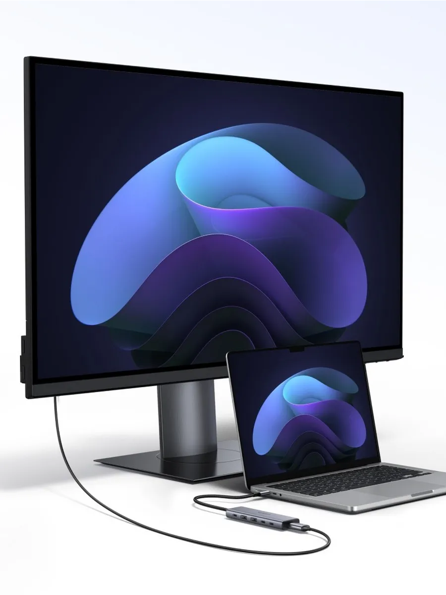 Сердцем мультимедийных возможностей док-станции является видеовыход DisplayPort версии 1.4. Он позволяет вывести изображение на один внешний монитор с невероятной детализацией — поддерживается максимальное разрешение 4K, то есть 2160p, с комфортной частотой обновления 60 Герц. Это значит, что вы сможете наслаждаться кристально чёткой картинкой, будь то работа со сложными графическими проектами, просмотр фильмов или играми.
