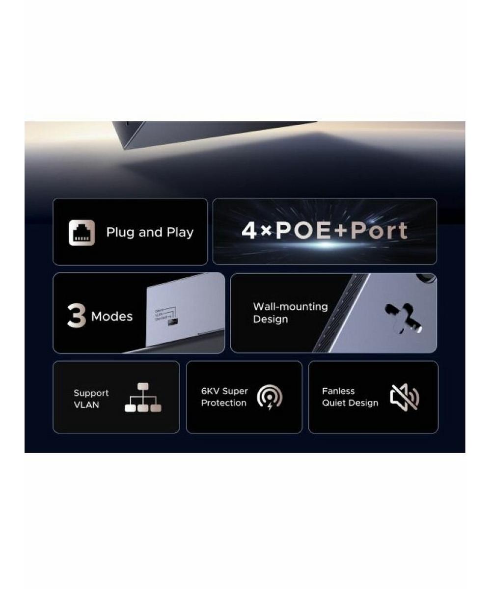 Коммутатор сетевой UGREEN CM741 (35371EU) 6-Port 4*PoE&2*Gigabit Ports Ethernet Switch