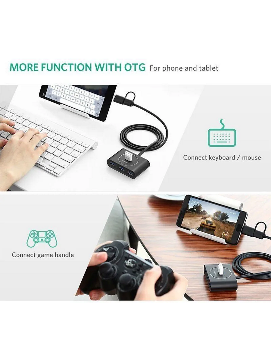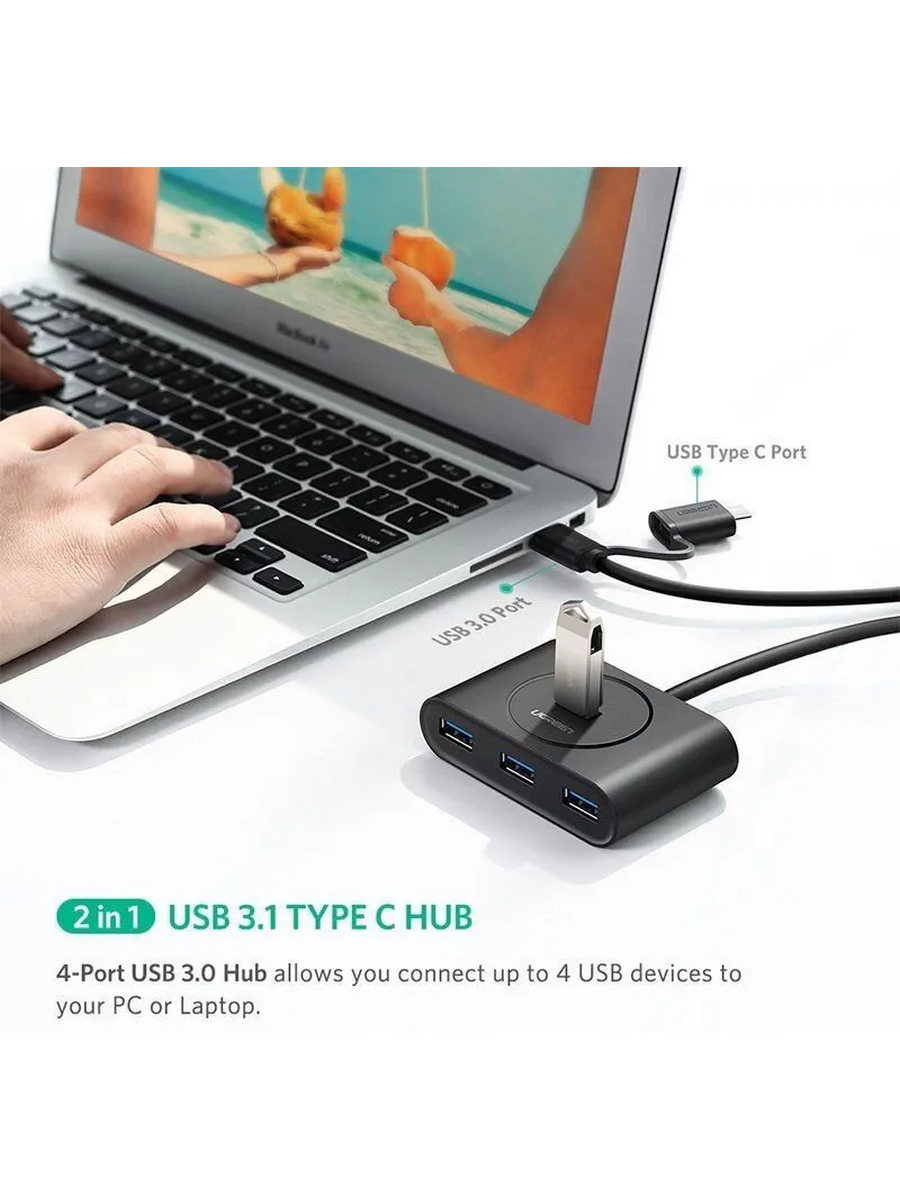 Расширьте возможности подключения вашего компьютера или ноутбука с помощью компактного USB-хаба UGREEN CR113. Устройство добавляет 4 дополнительных порта USB 3.0/Type-C, избавляя вас от необходимости постоянного переподключения устройств.