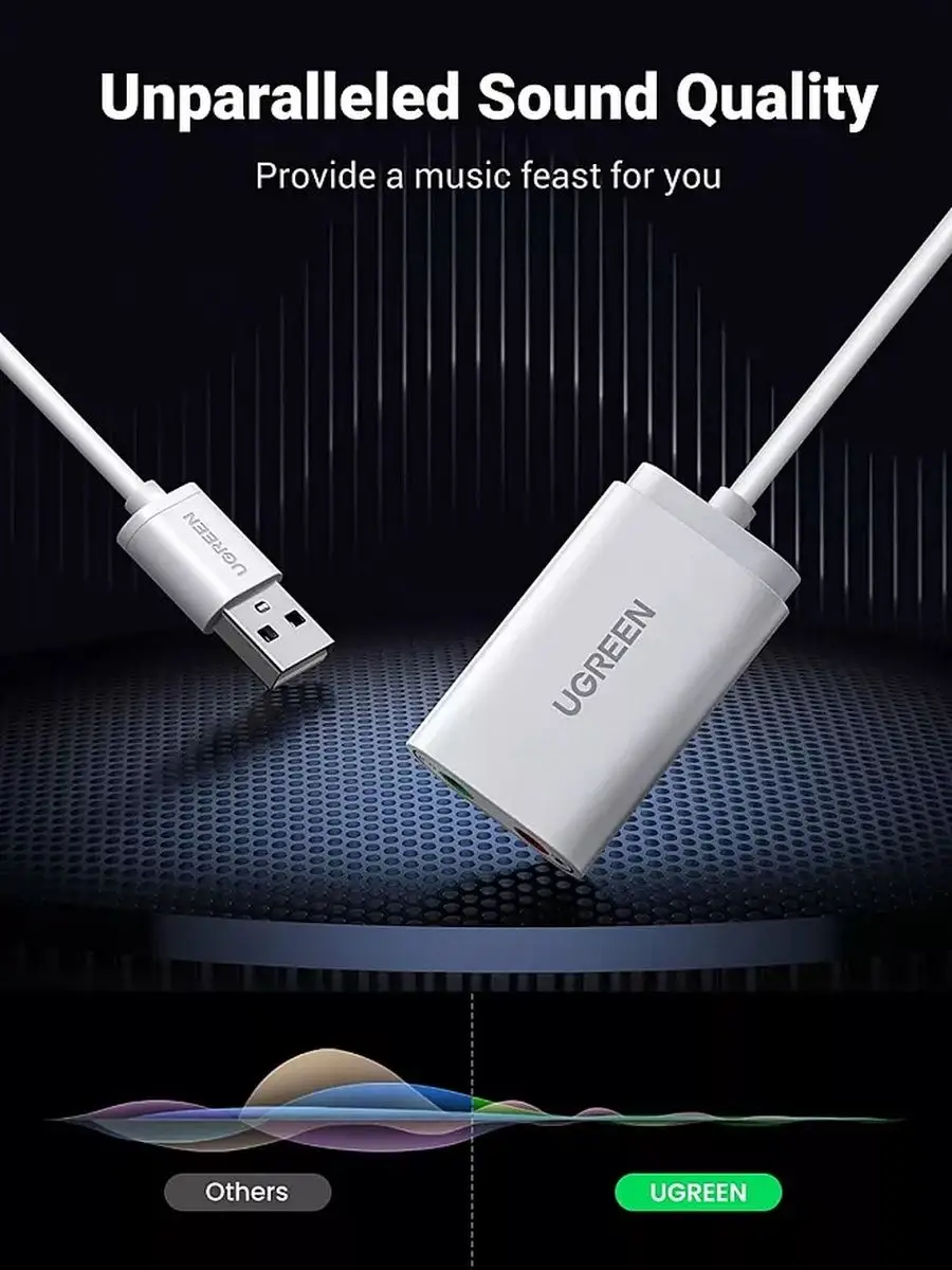 Компактный USB‑аудиоадаптер, позволяющий быстро подключить аудиоустройства к компьютеру или другому совместимому устройству и получить качественное звучание.
