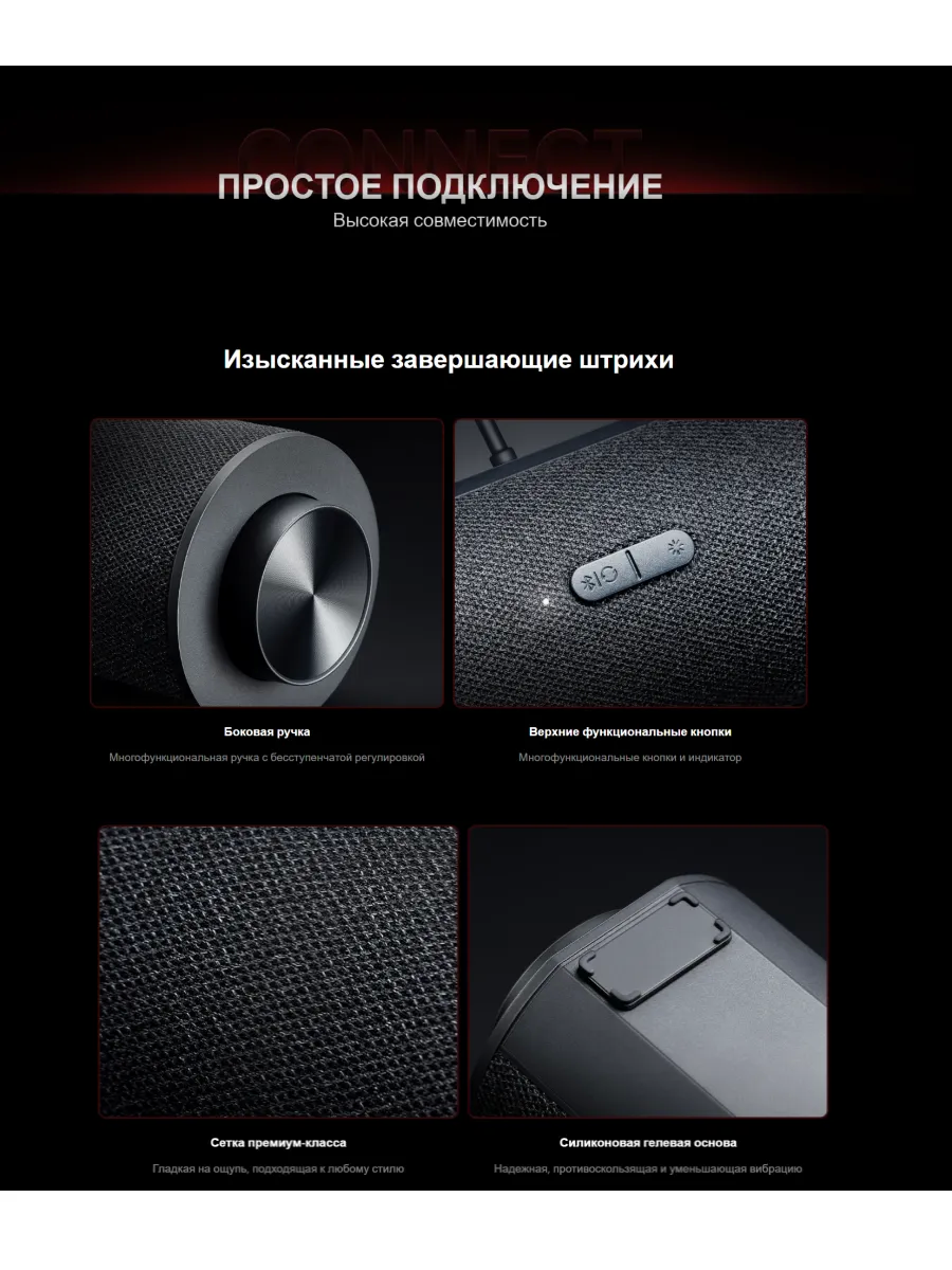 Встроенный двойной полнодиапазонный динамик NIB и специальный дизайн корпуса обеспечивают насыщенные и приятные высокие и средние частоты. Большие двойные пассивные радиаторы улучшают работу НЧ-динамиков и обеспечивают мощные басы.