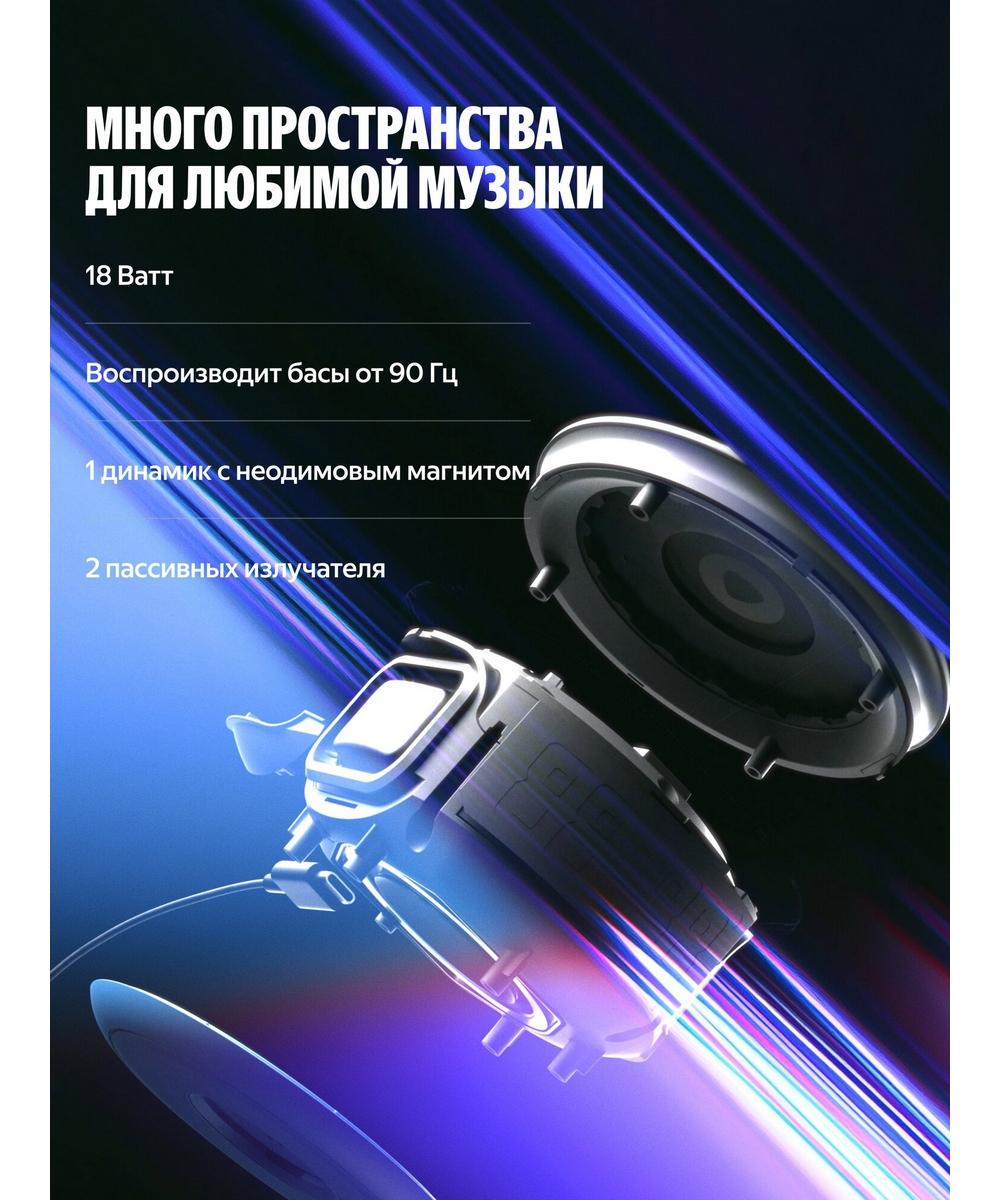 ● Выразительное звучание: специально спроектированный динамик в 18 Вт с неодимовым магнитом и двумя пассивными излучателями усиливает звук и воспроизводит басы от 90 Гц. За счёт этого низкие частоты становятся заметнее, а любимые треки звучат ярче.