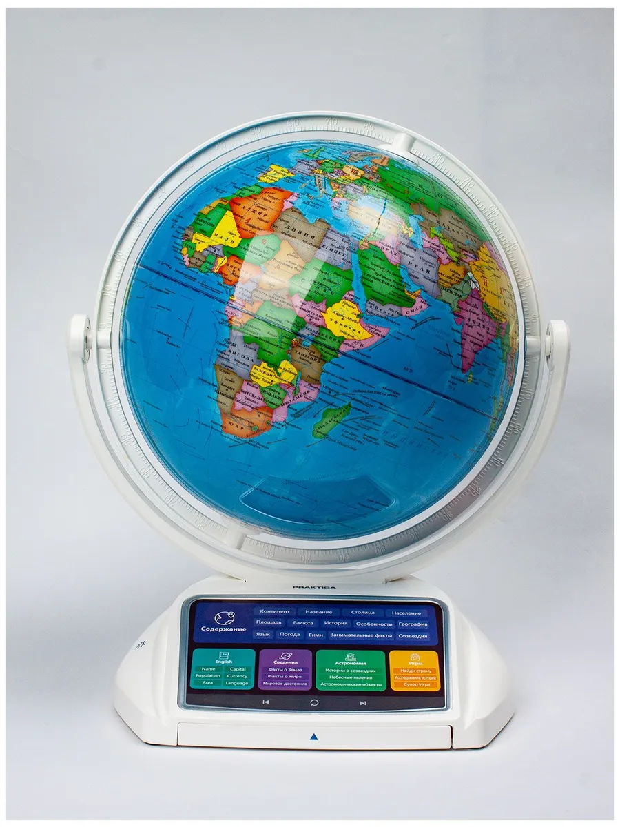 Интерактивный глобус Praktica Stellaris - это передовая интерактивная игрушка, которая предлагает более 12 000 интересных фактов о Земле, Солнечной системе и созвездиях. Глобус оснащен беспроводной умной ручкой OID, выдвижной панелью регионов России и интерактивной картой звездного неба. Изучайте мир с 14 категориями информации о странах, астрономии и географических играх. Поддерживает русский и английский языки.