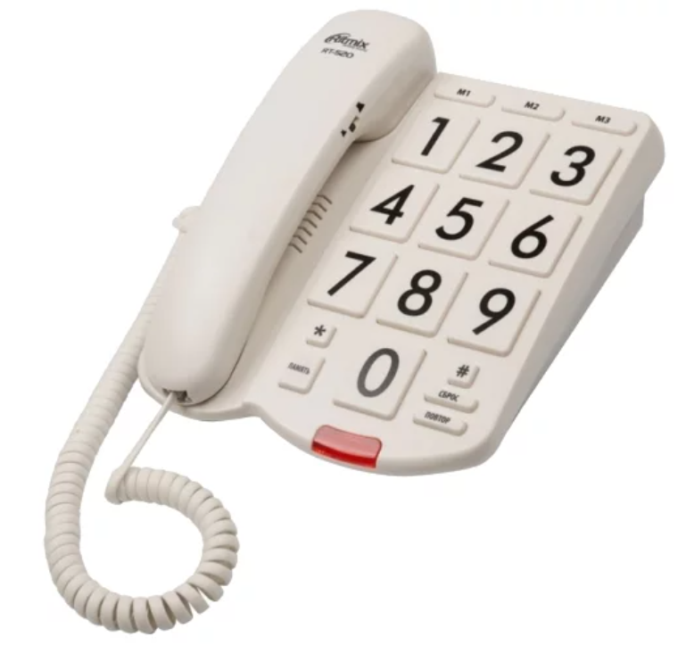 Телефон проводной Ritmix RT-520 оптимально подойдет для пожилых людей. Эта модель выполнена в оригинальном дизайнерском решении и оснащена большими кнопками с очень крупными цифрами. Корпус устройства произведен из пластика и оформлен в черной расцветке. При входящем звонке на корпусе загорается специальный световой индикатор. Универсальная конструкция позволяет расположить такой телефон как на столе, так и на стене.
