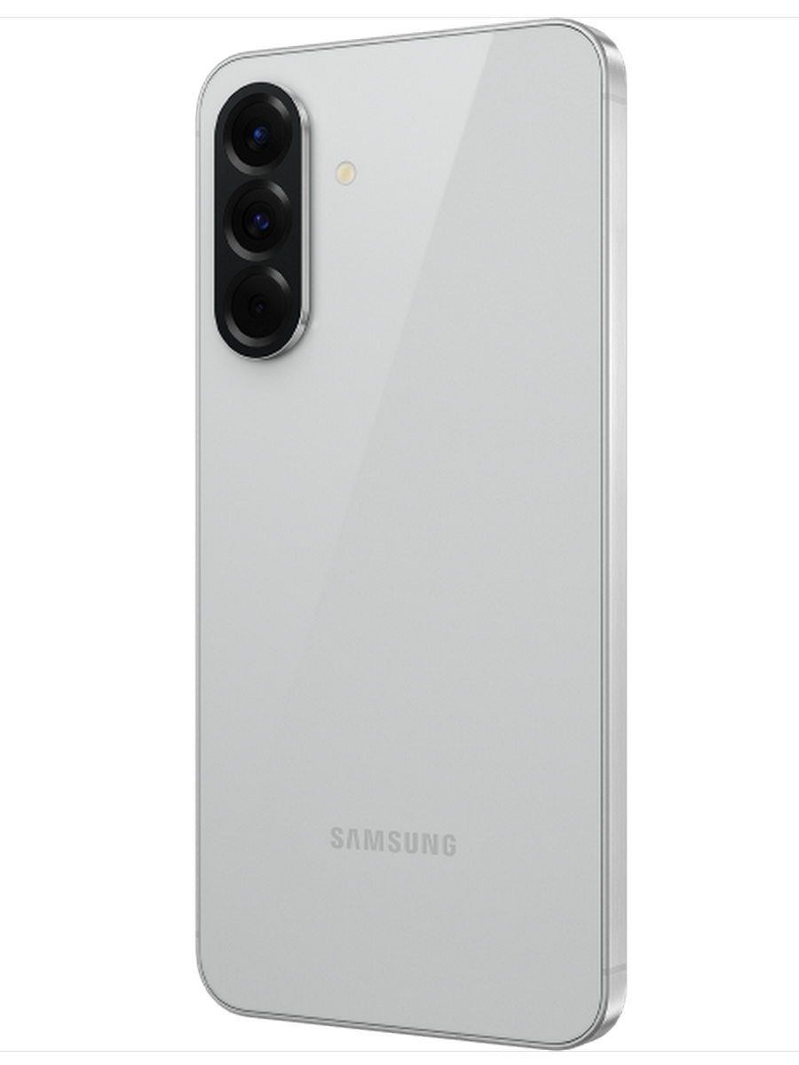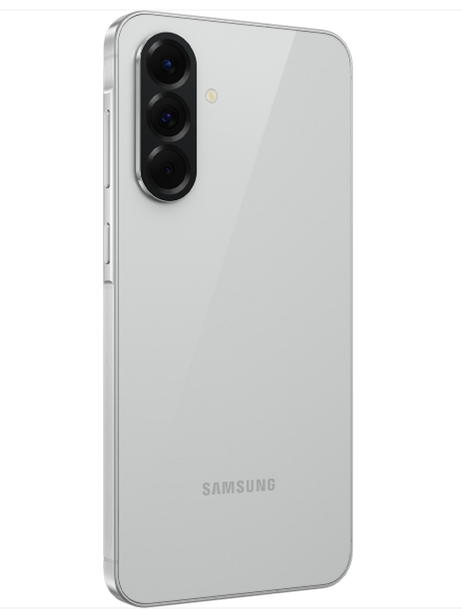 Смартфон Samsung Galaxy A56 5G с многофункциональной камерой, мощным процессором и функциями искусственного интеллекта сочетает в себе современный дизайн в сером цвете и широкие возможности.